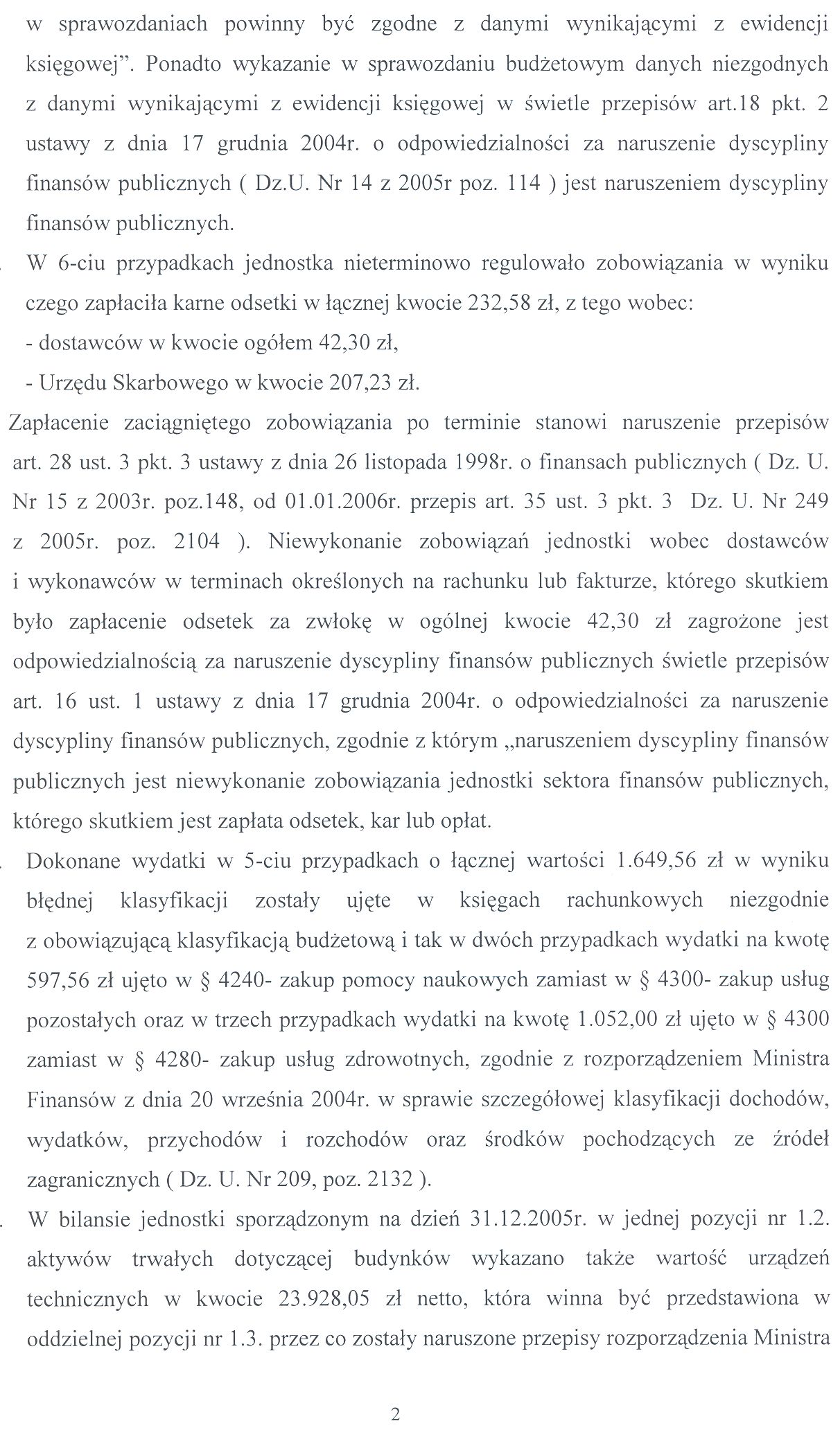 Kontrola wydatków przeznaczonych na wynagrodzenia oraz gospodarki finansowej za 2005r.