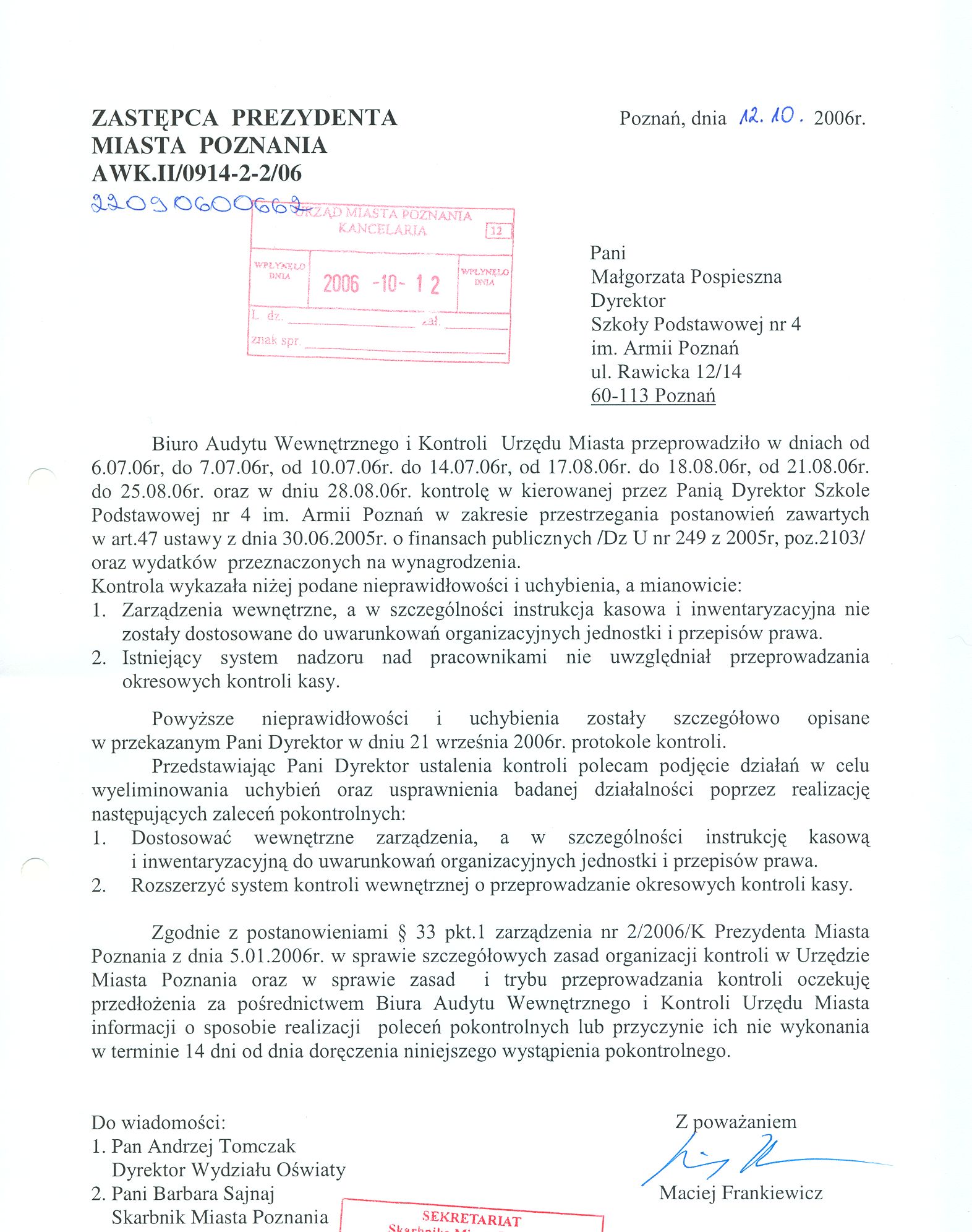 Informacja pobrana do BIP automatycznie z elektronicznego systemu zarządzania dokumentacją Urzędu Miasta Poznania.