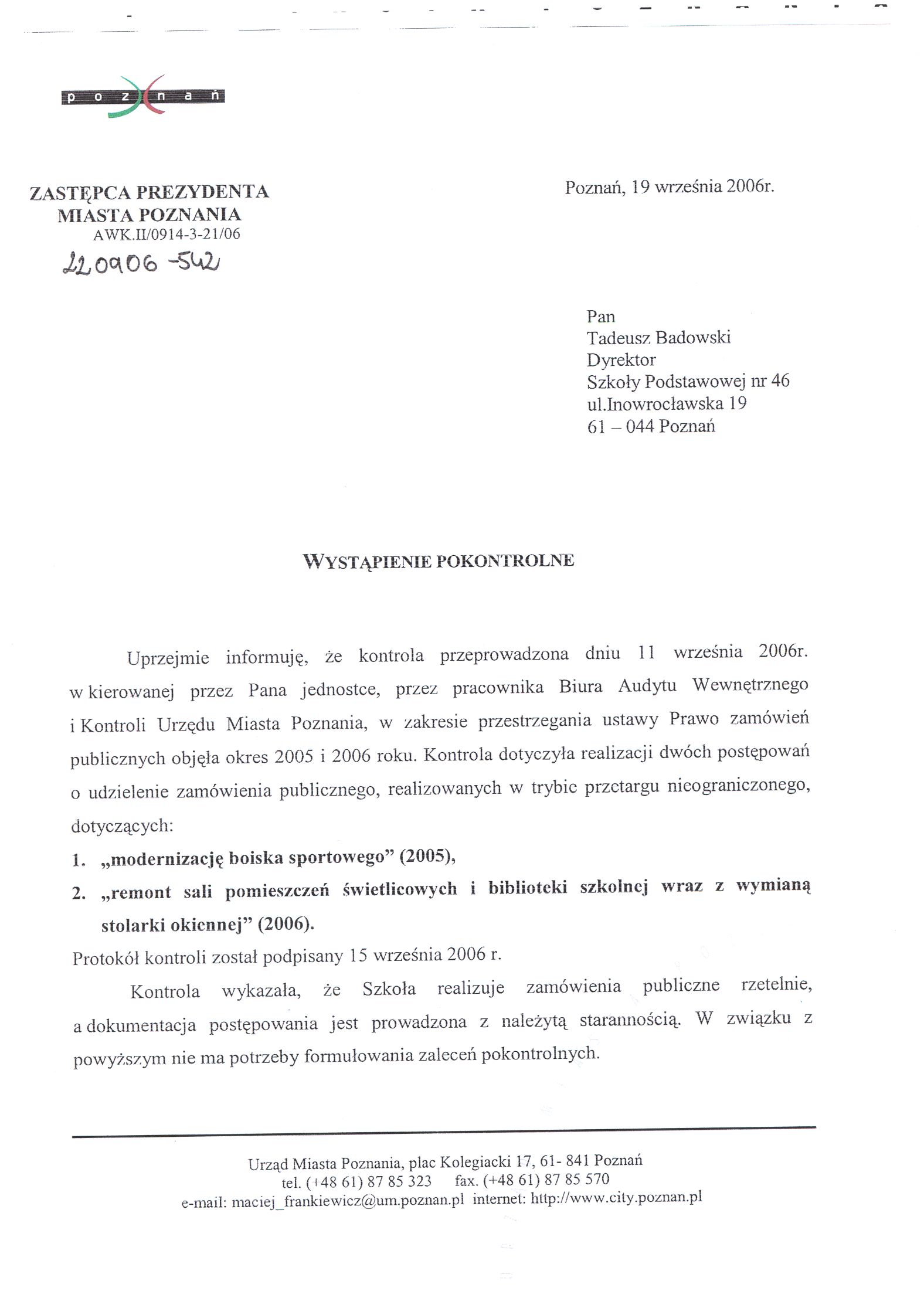 Informacja pobrana do BIP automatycznie z elektronicznego systemu zarządzania dokumentacją Urzędu Miasta Poznania.