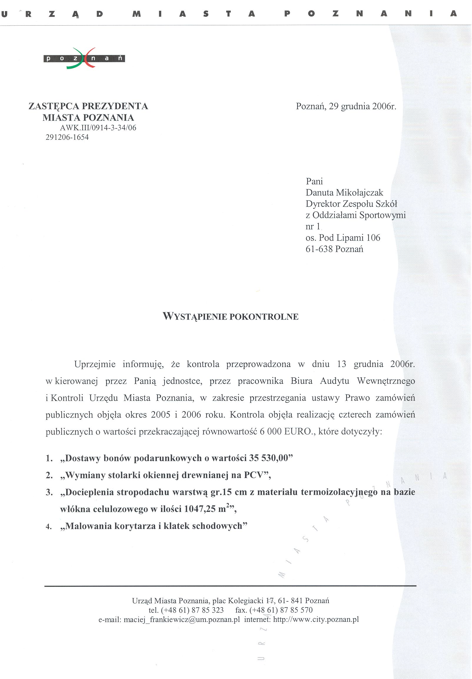 Informacja pobrana do BIP automatycznie z elektronicznego systemu zarządzania dokumentacją Urzędu Miasta Poznania.