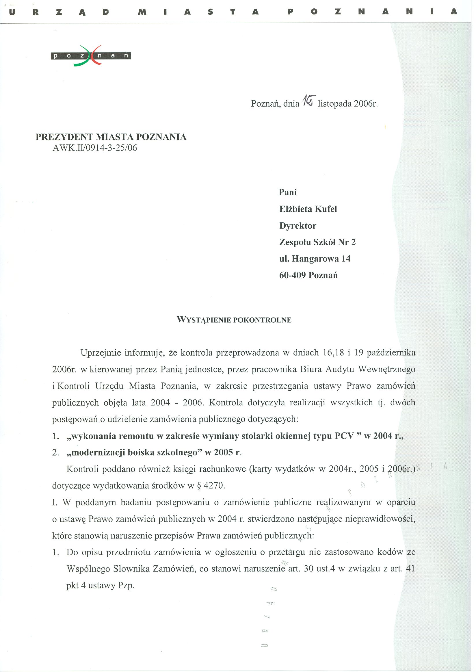 Informacja pobrana do BIP automatycznie z elektronicznego systemu zarządzania dokumentacją Urzędu Miasta Poznania.