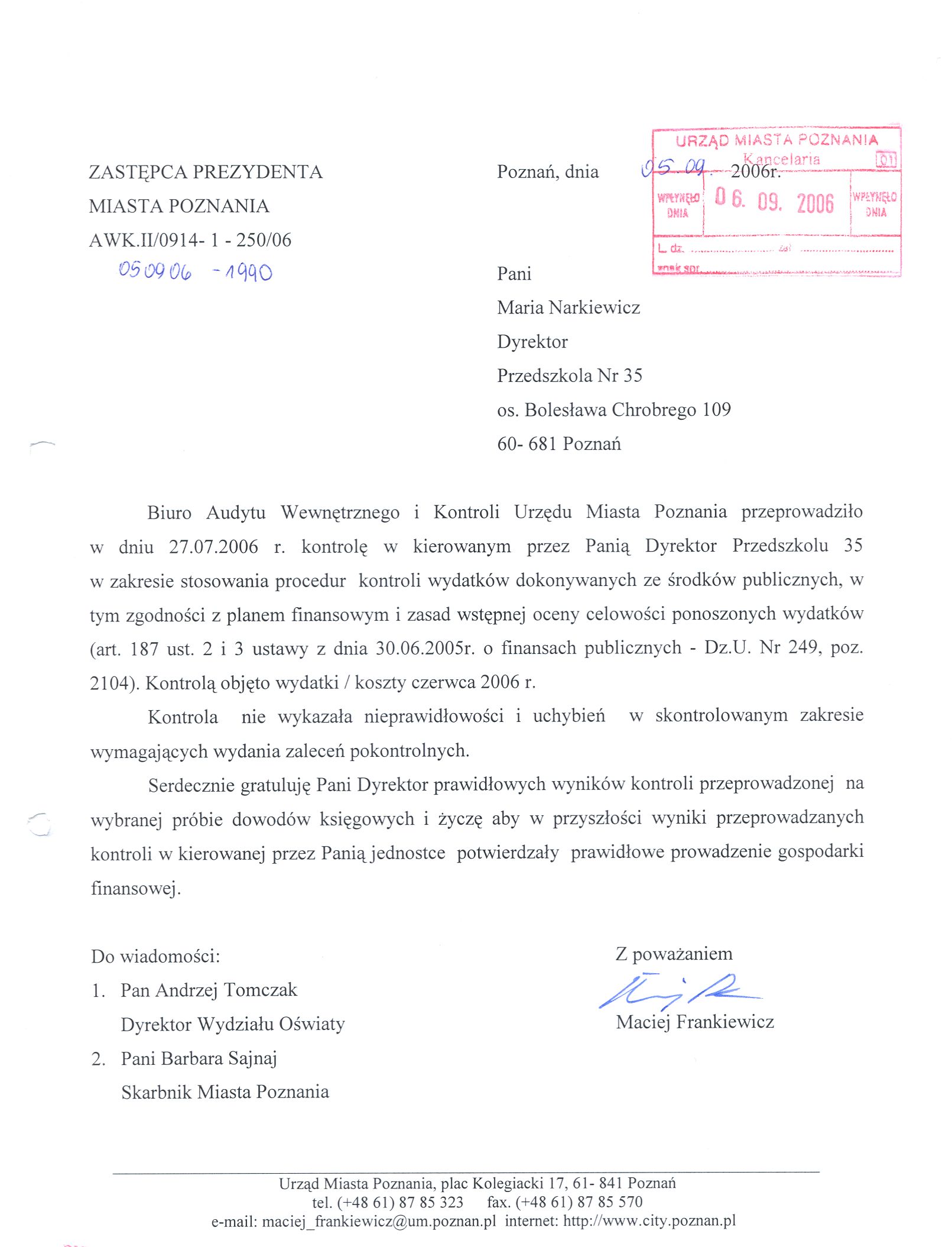 Informacja pobrana do BIP automatycznie z elektronicznego systemu zarządzania dokumentacją Urzędu Miasta Poznania.