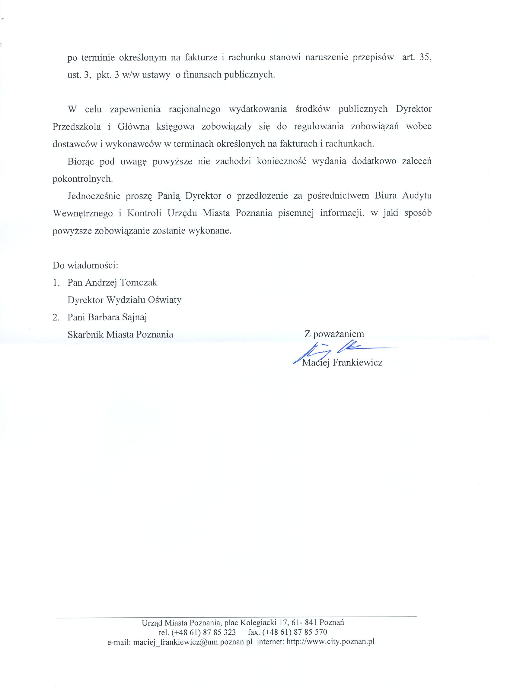 Informacja pobrana do BIP automatycznie z elektronicznego systemu zarządzania dokumentacją Urzędu Miasta Poznania.