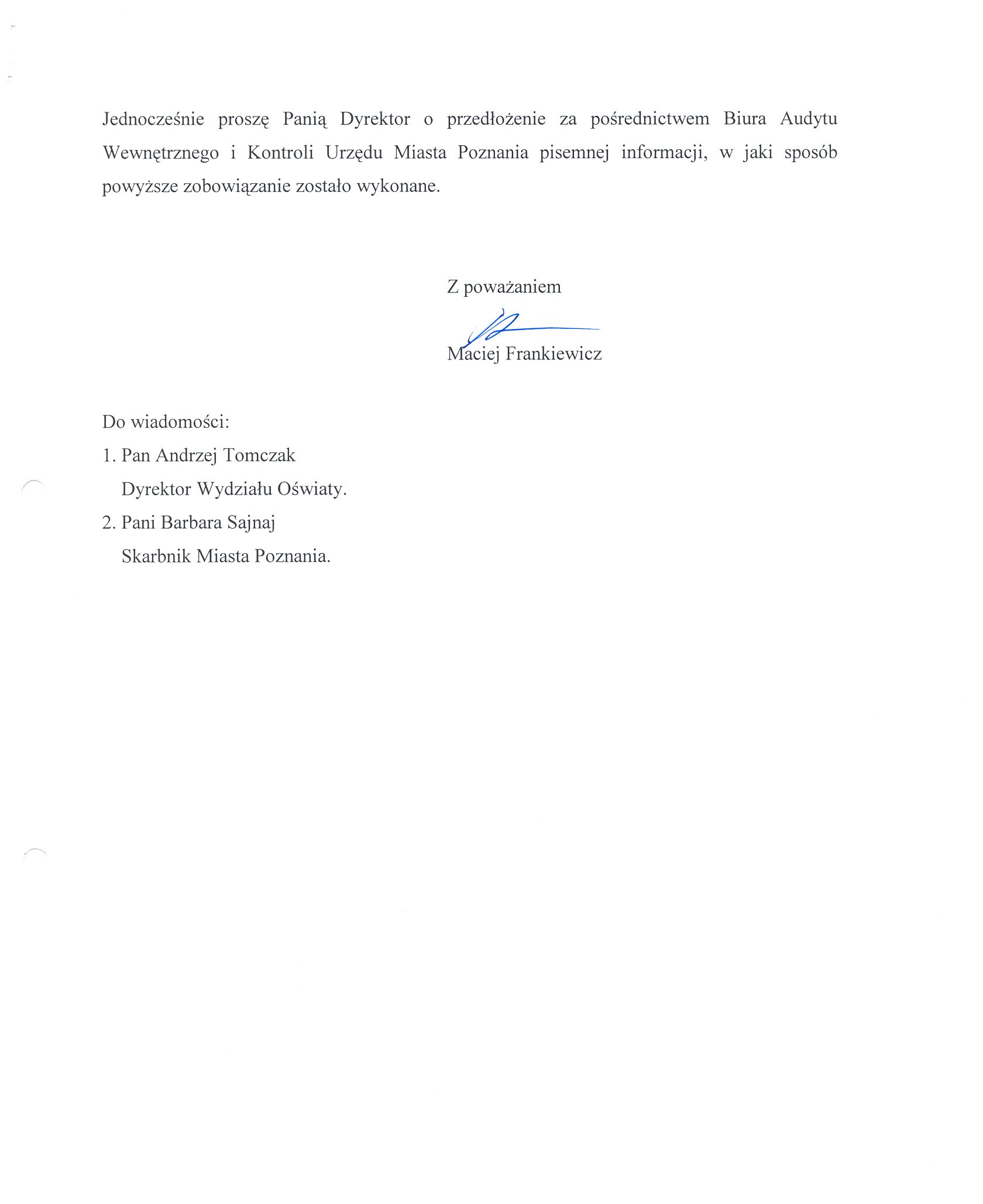 Informacja pobrana do BIP automatycznie z elektronicznego systemu zarządzania dokumentacją Urzędu Miasta Poznania.