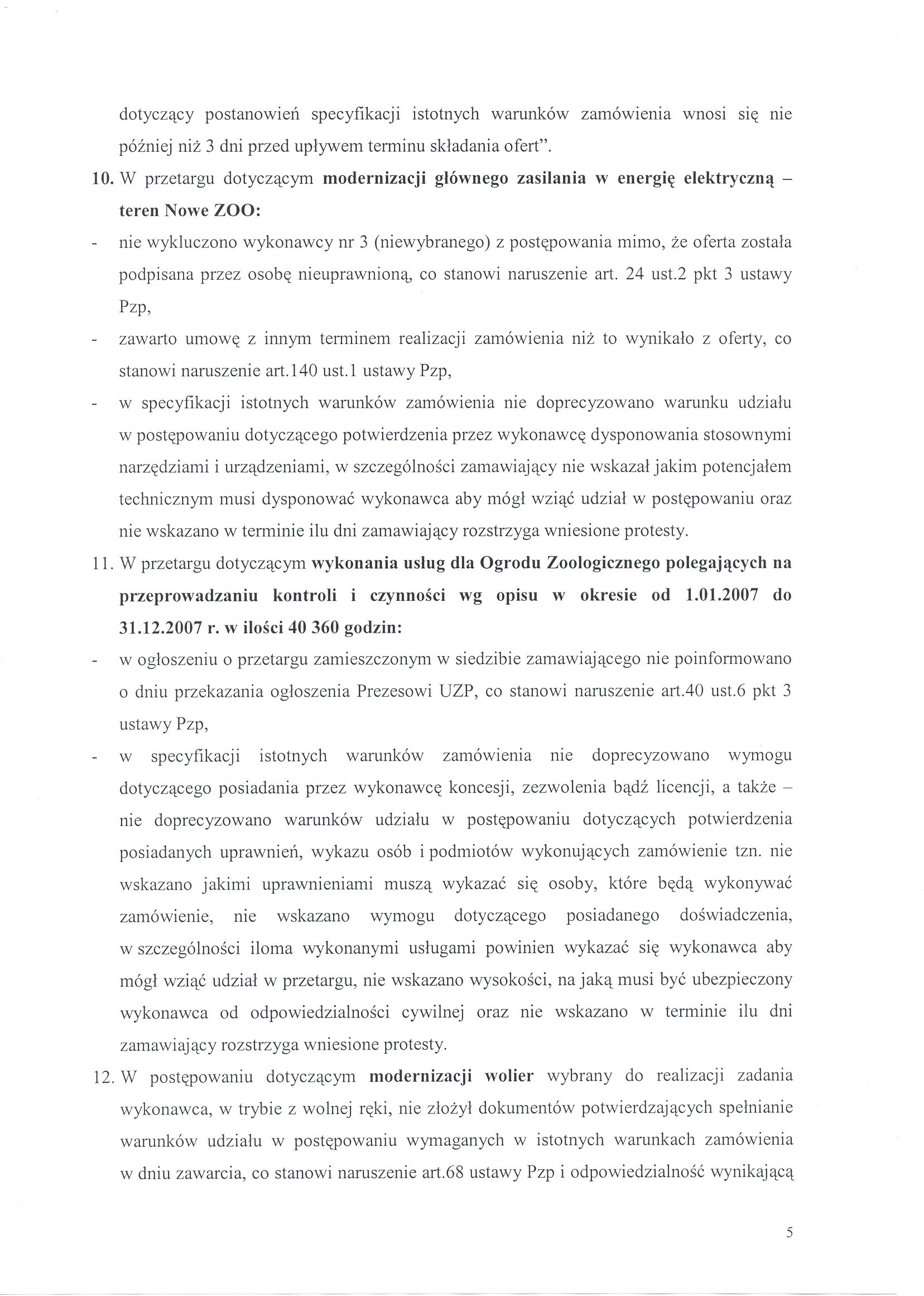 - - zwrócenia uwagi aby w specyfikacji istotnych warunków zamówienia wskazać ilość dni, w których zamawiający rozstrzyga wniesione protesty,
