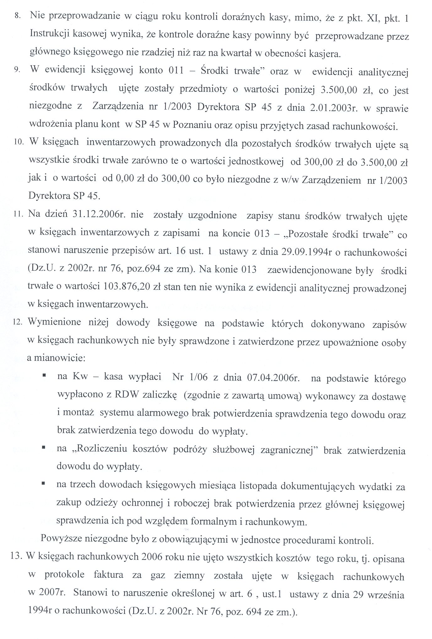 Rodzaj dokumentu pokontrolnego