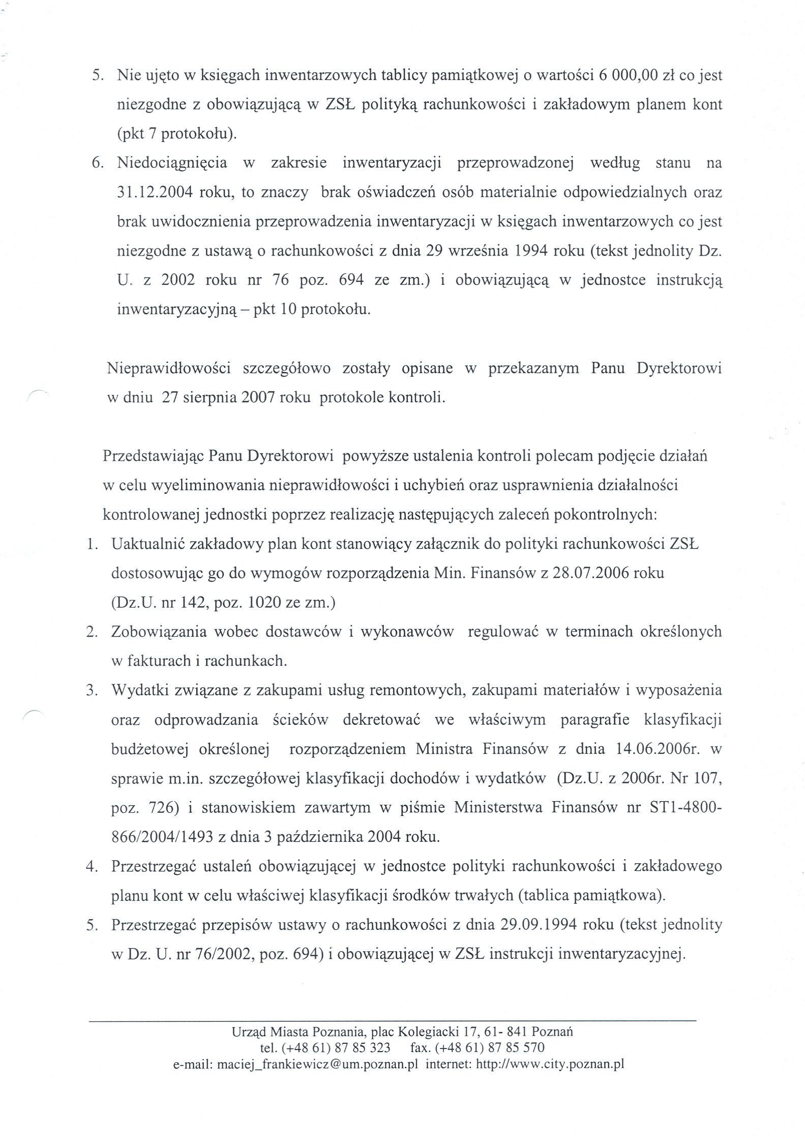 - 5. Przestrzegać przepisów ust. o r-kowości z 29.09.1994r. i obowiązującej instr. inwentaryzacyjnej.
