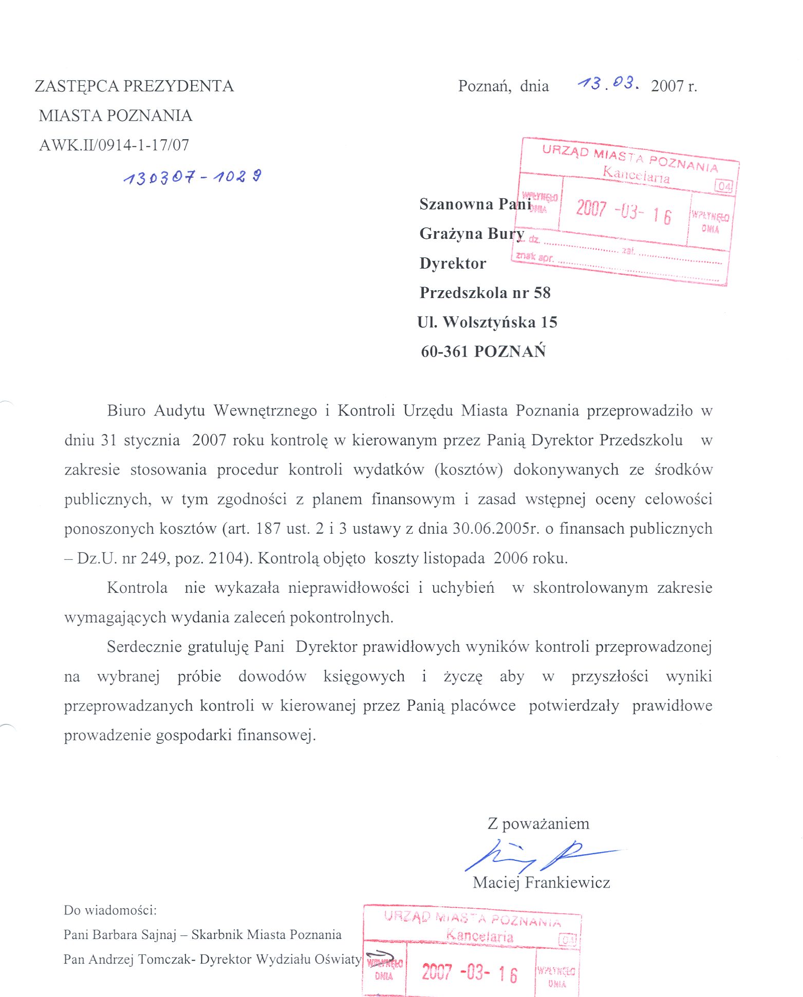 Informacja pobrana do BIP automatycznie z elektronicznego systemu zarządzania dokumentacją Urzędu Miasta Poznania.