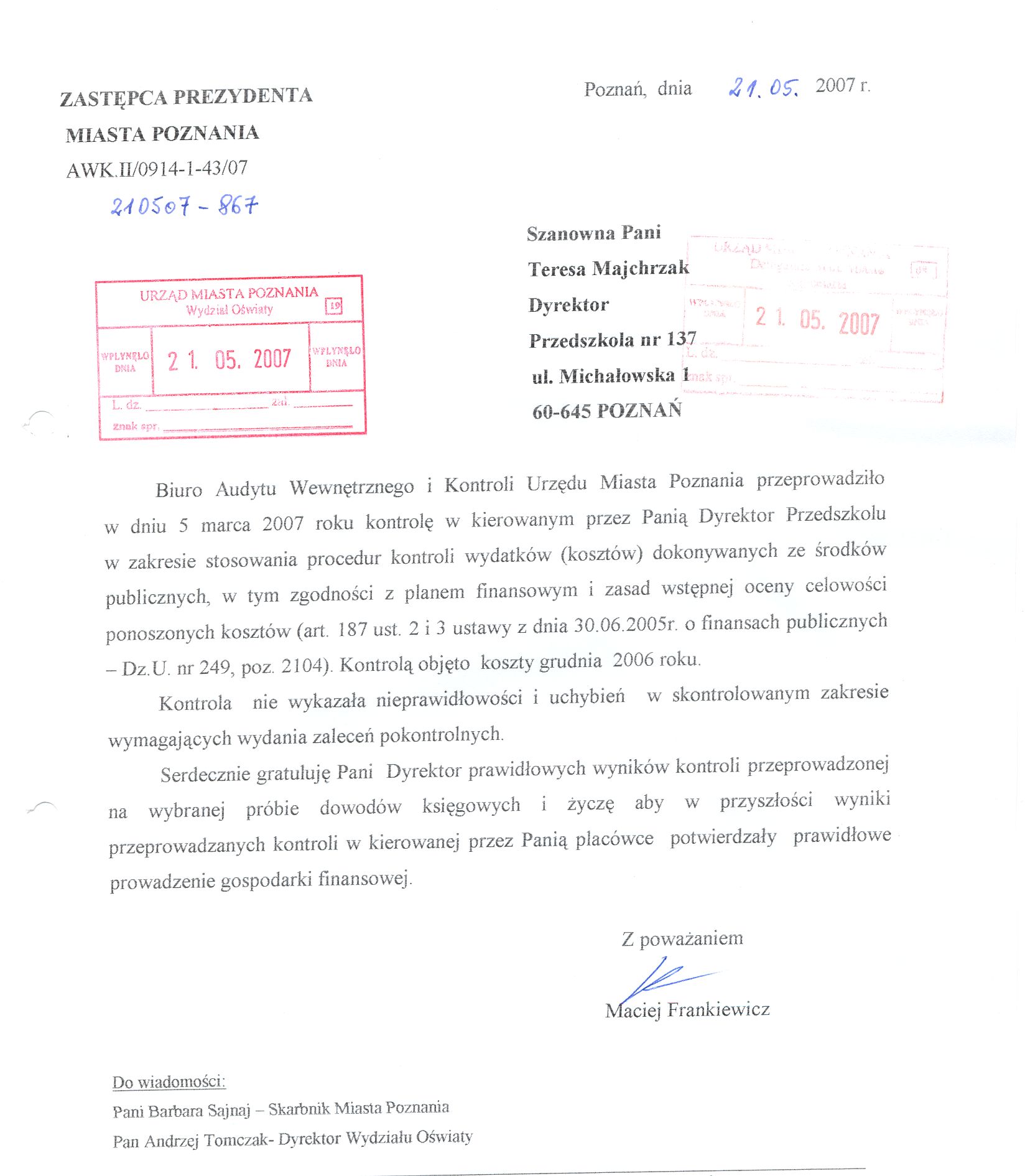 Informacja pobrana do BIP automatycznie z elektronicznego systemu zarządzania dokumentacją Urzędu Miasta Poznania.