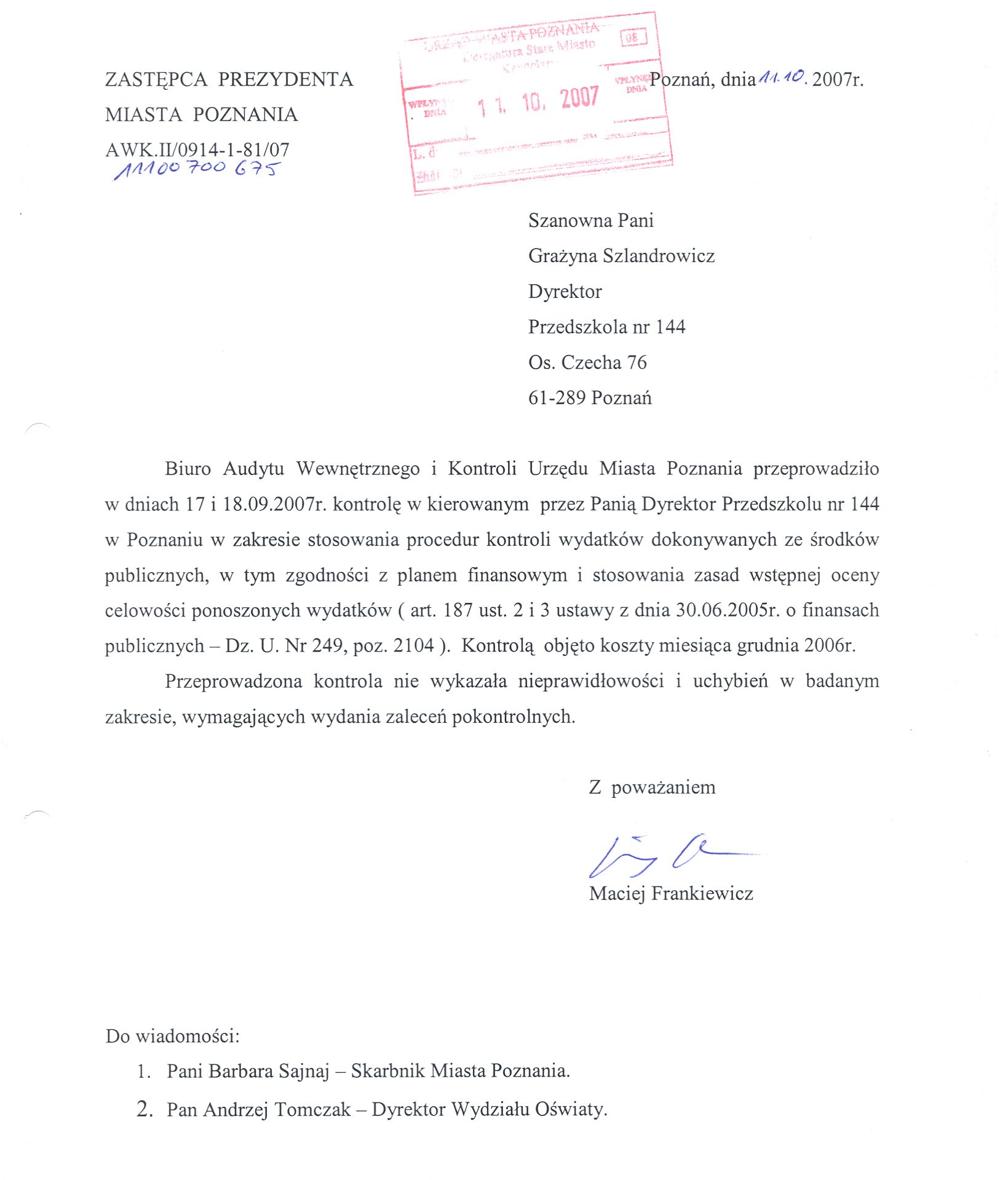 Informacja pobrana do BIP automatycznie z elektronicznego systemu zarządzania dokumentacją Urzędu Miasta Poznania.