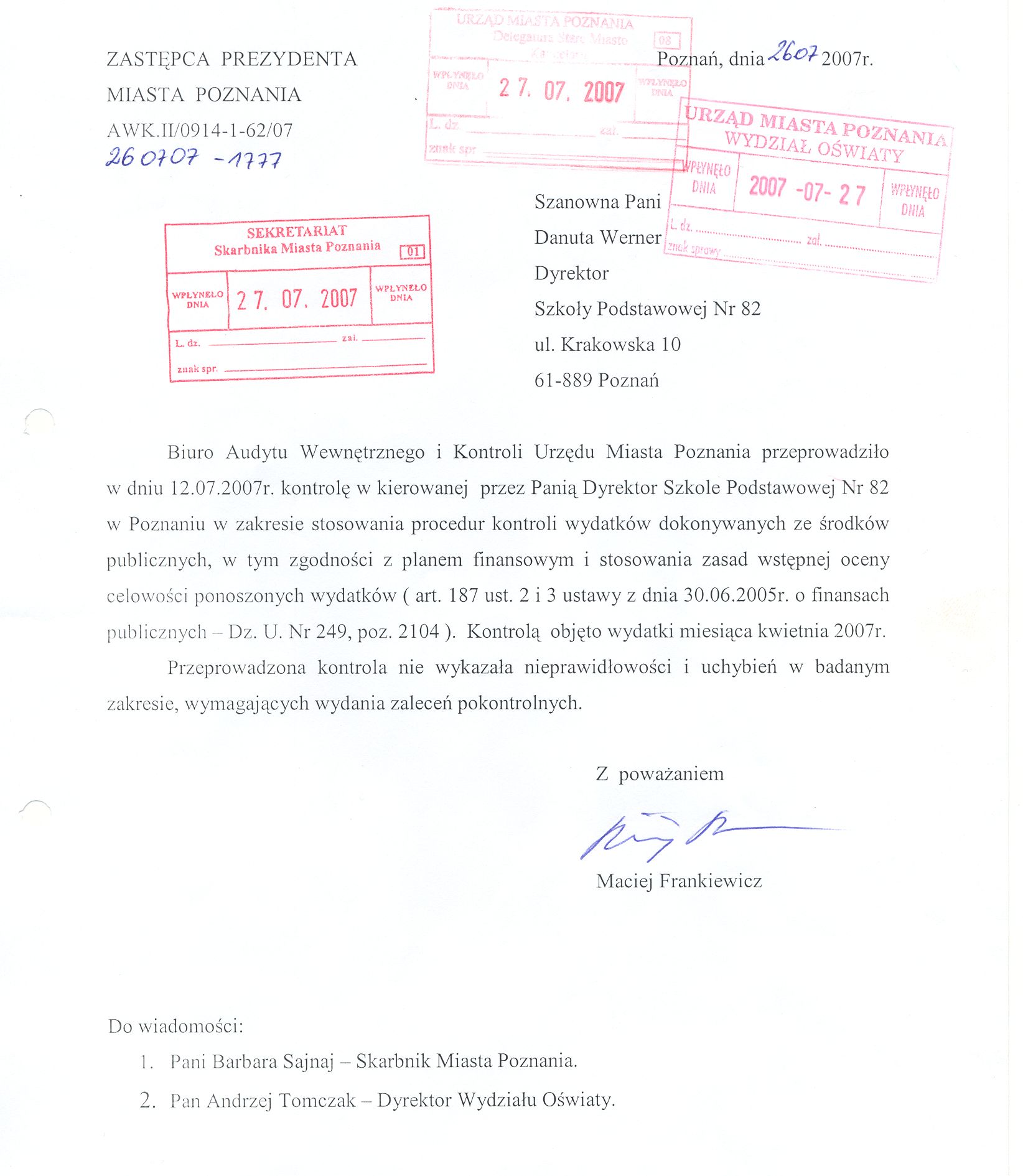 Informacja pobrana do BIP automatycznie z elektronicznego systemu zarządzania dokumentacją Urzędu Miasta Poznania.