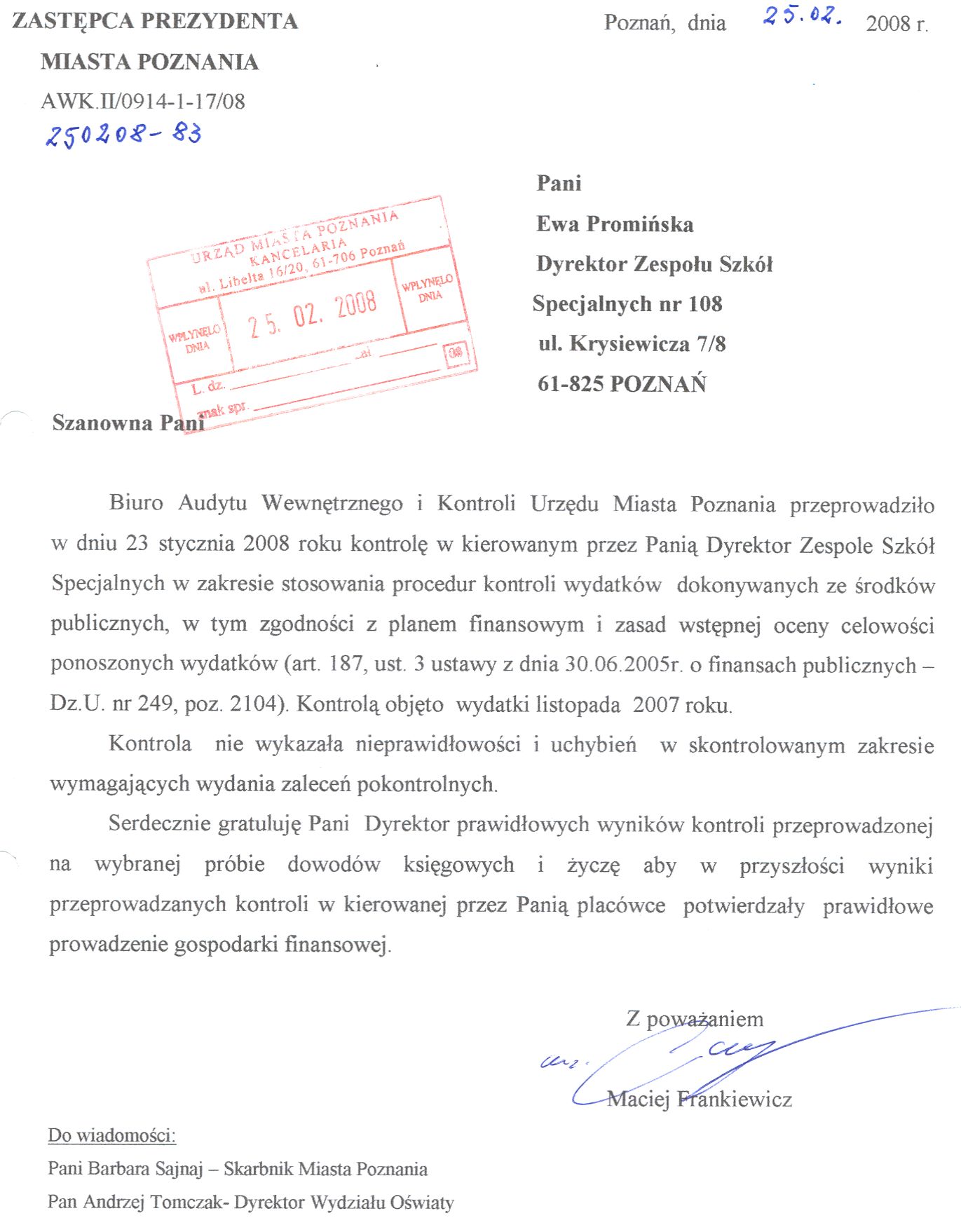 Informacja pobrana do BIP automatycznie z elektronicznego systemu zarządzania dokumentacją Urzędu Miasta Poznania.