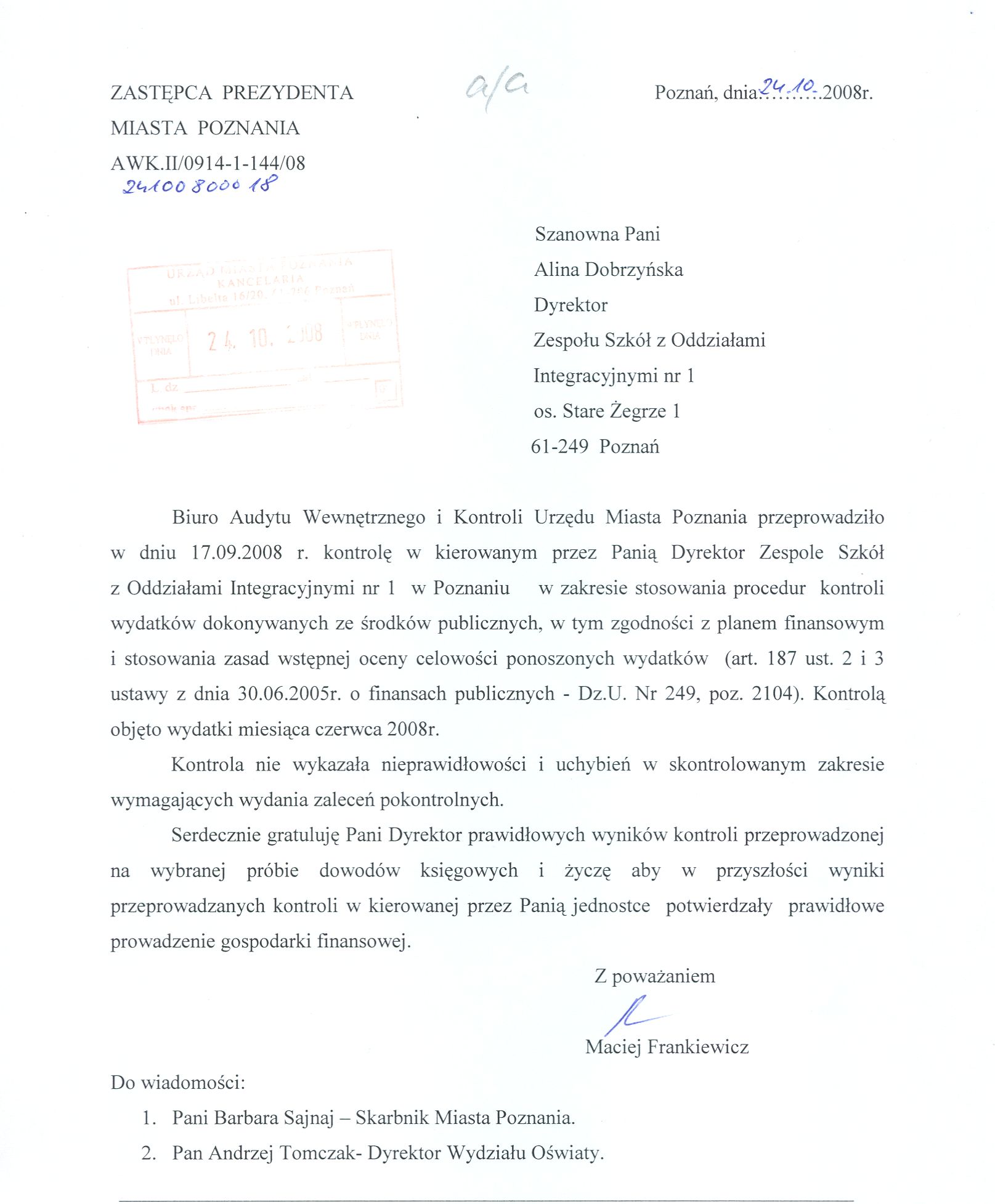 Informacja pobrana do BIP automatycznie z elektronicznego systemu zarządzania dokumentacją Urzędu Miasta Poznania.