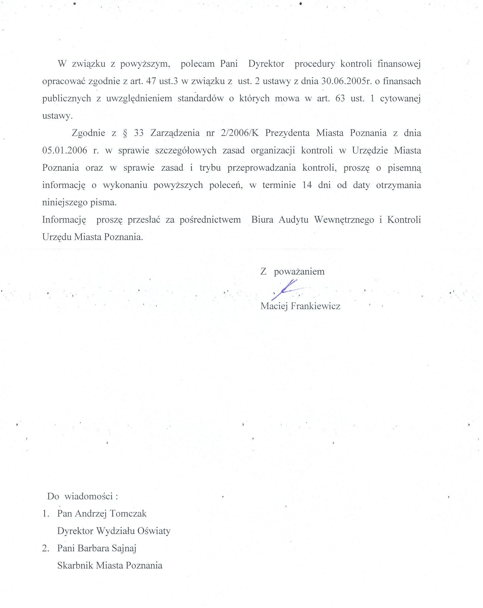 Informacja pobrana do BIP automatycznie z elektronicznego systemu zarządzania dokumentacją Urzędu Miasta Poznania.