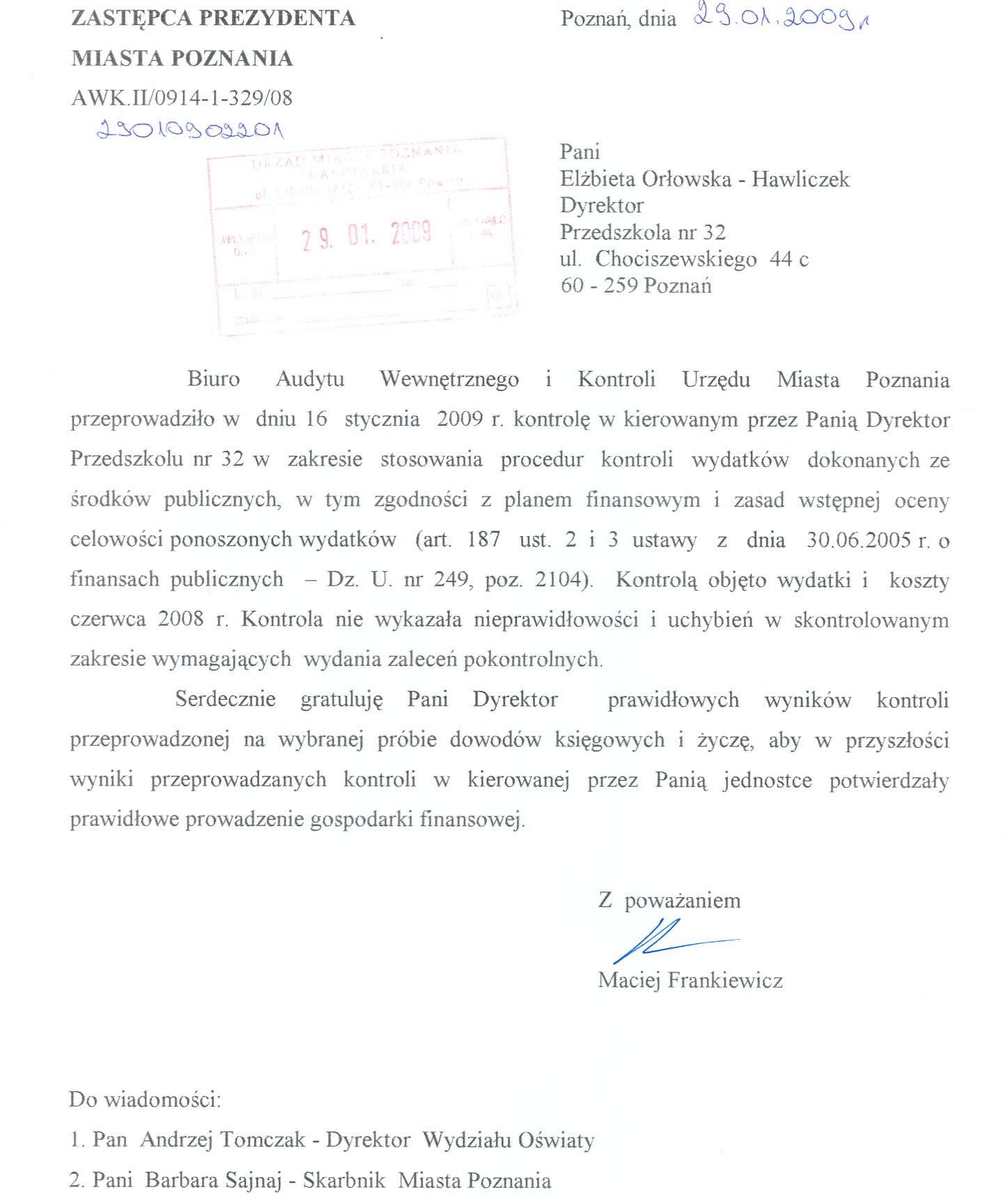 Informacja pobrana do BIP automatycznie z elektronicznego systemu zarządzania dokumentacją Urzędu Miasta Poznania.