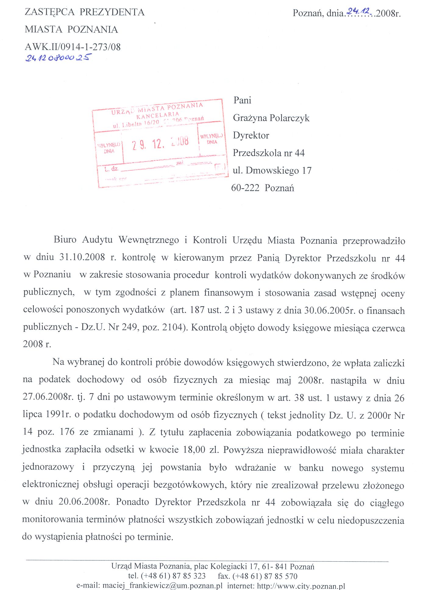 Informacja pobrana do BIP automatycznie z elektronicznego systemu zarządzania dokumentacją Urzędu Miasta Poznania.