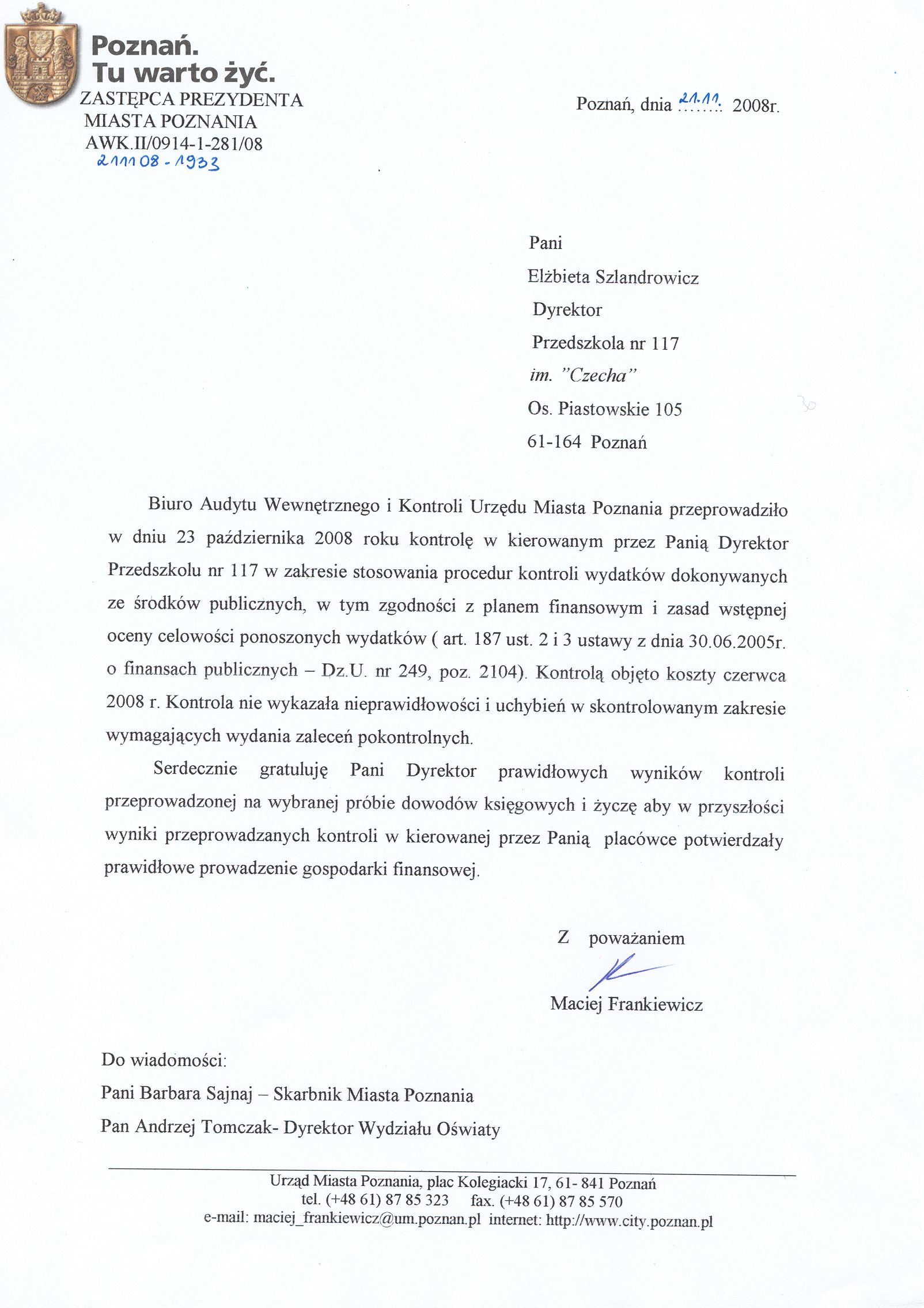 Informacja pobrana do BIP automatycznie z elektronicznego systemu zarządzania dokumentacją Urzędu Miasta Poznania.