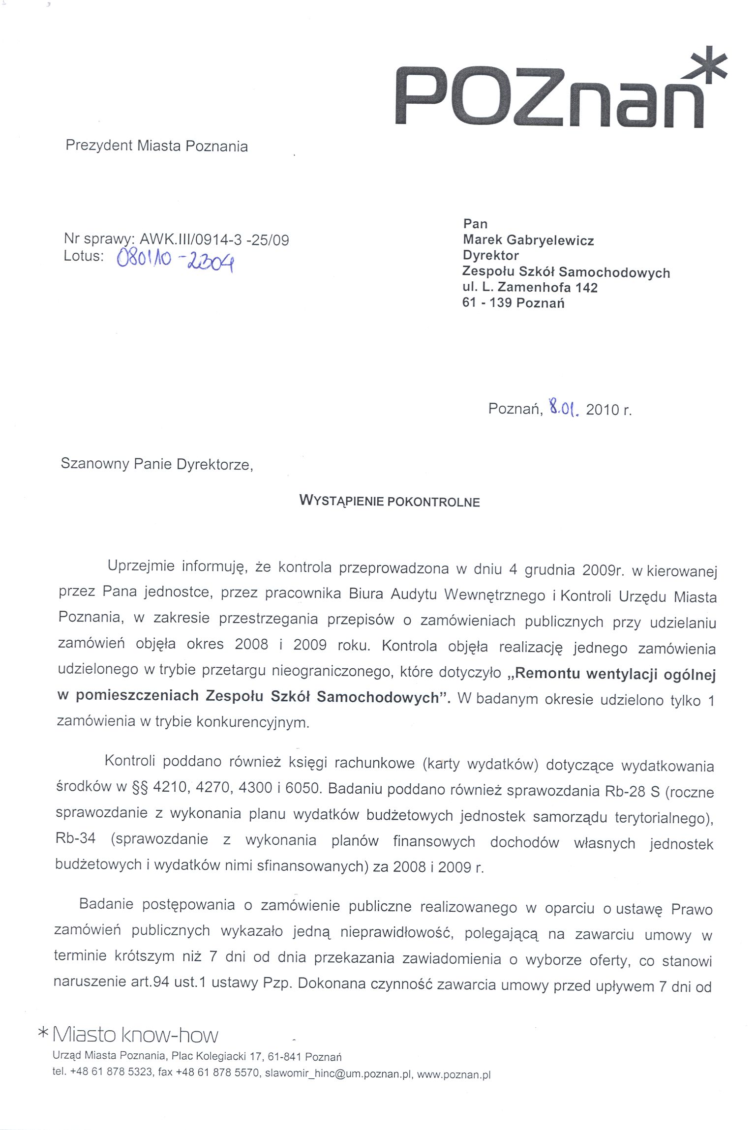 Informacja pobrana do BIP automatycznie z elektronicznego systemu zarządzania dokumentacją Urzędu Miasta Poznania.
