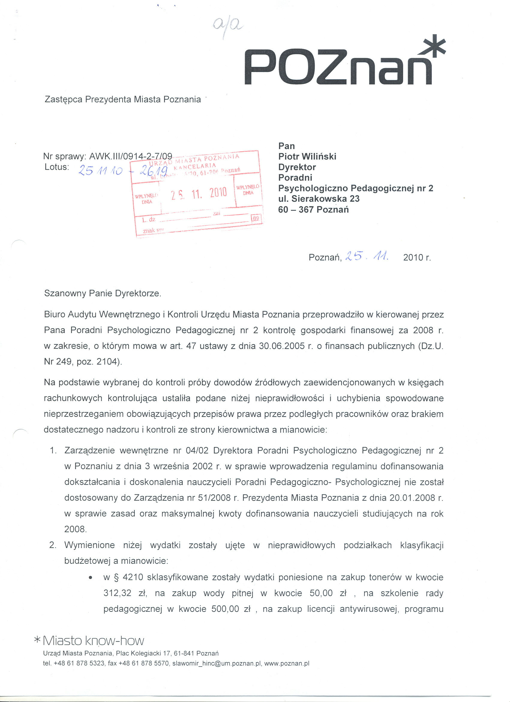 Informacja pobrana do BIP automatycznie z elektronicznego systemu zarządzania dokumentacją Urzędu Miasta Poznania.