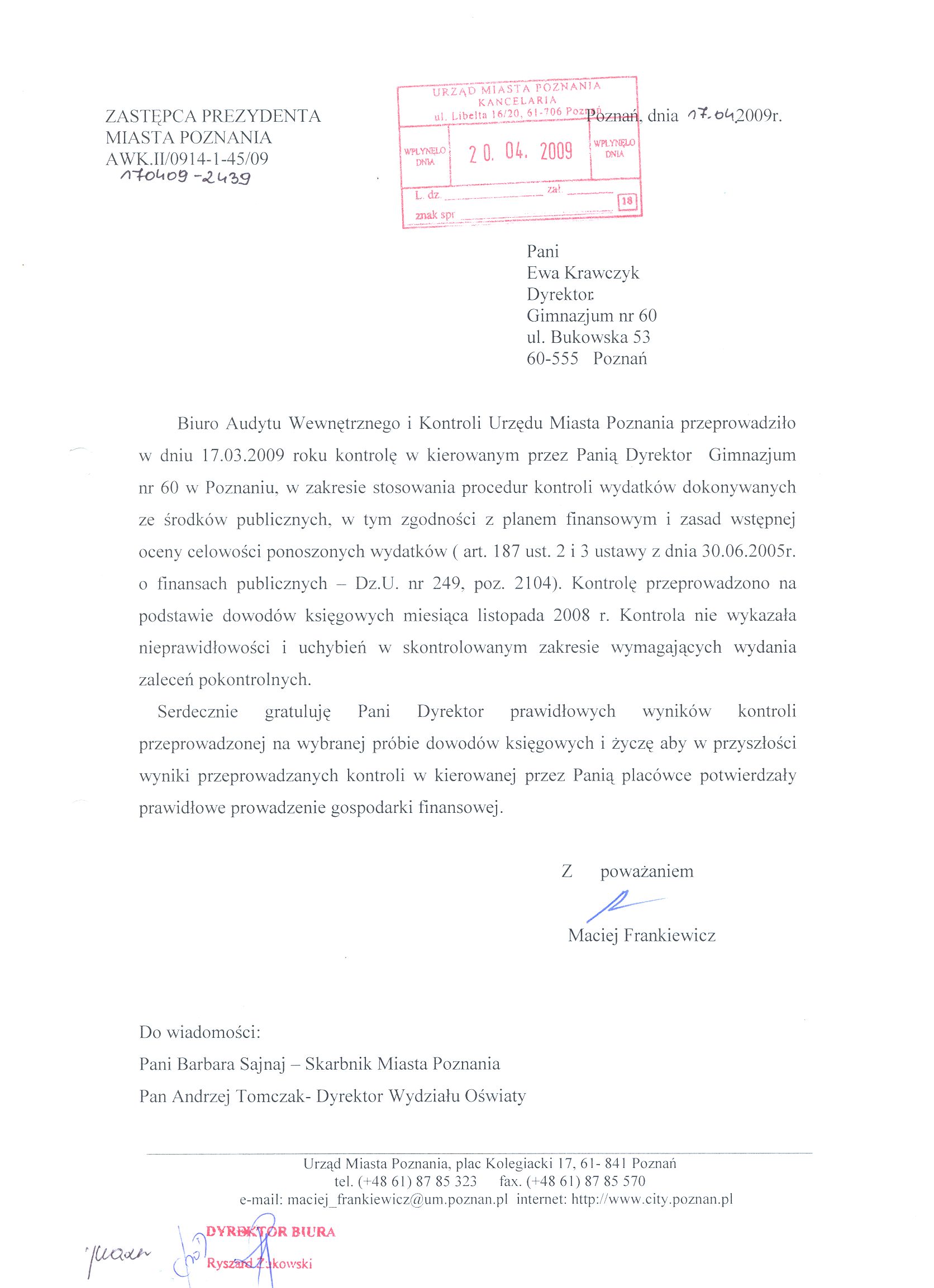 Informacja pobrana do BIP automatycznie z elektronicznego systemu zarządzania dokumentacją Urzędu Miasta Poznania.