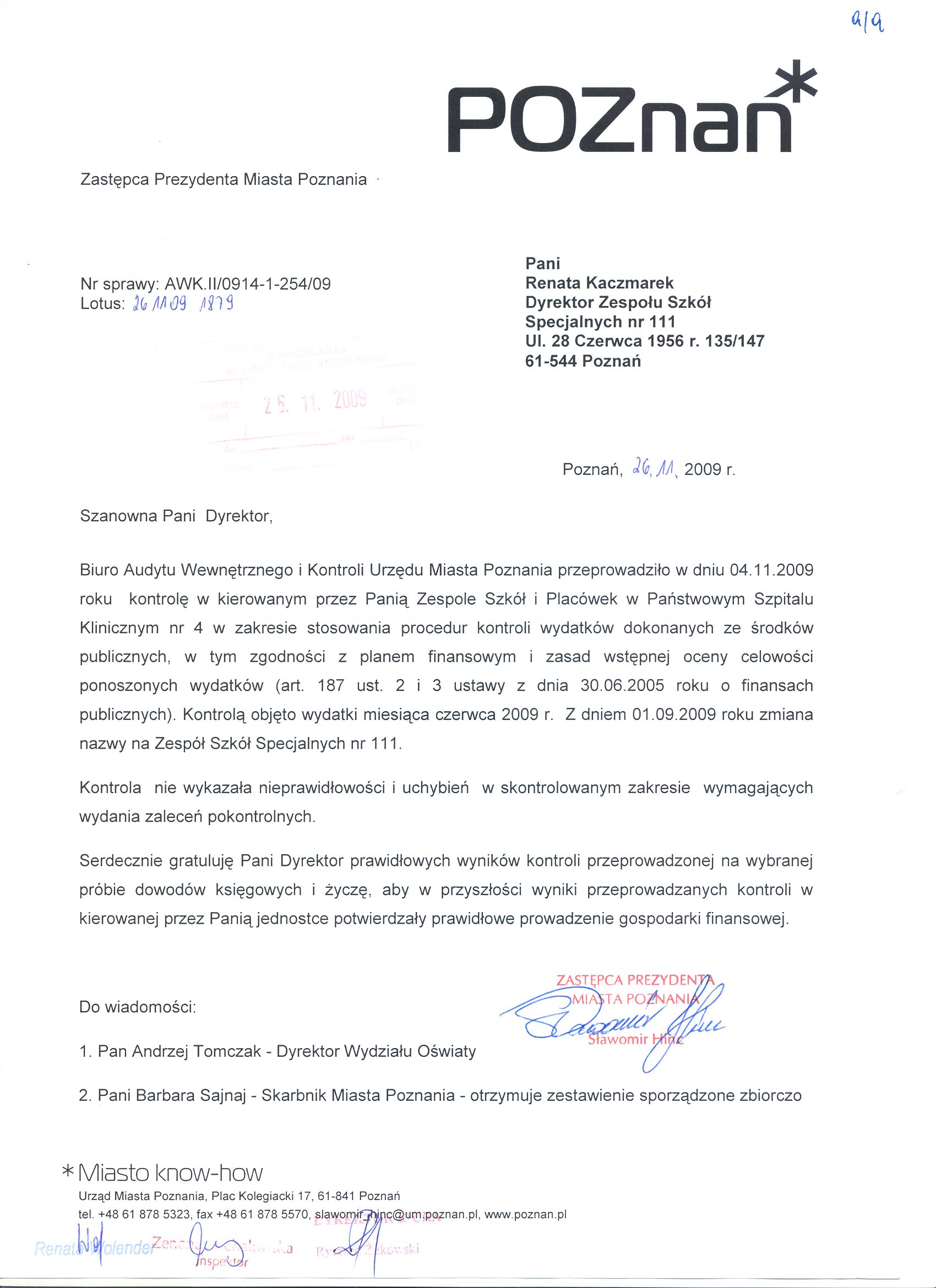 Informacja pobrana do BIP automatycznie z elektronicznego systemu zarządzania dokumentacją Urzędu Miasta Poznania.