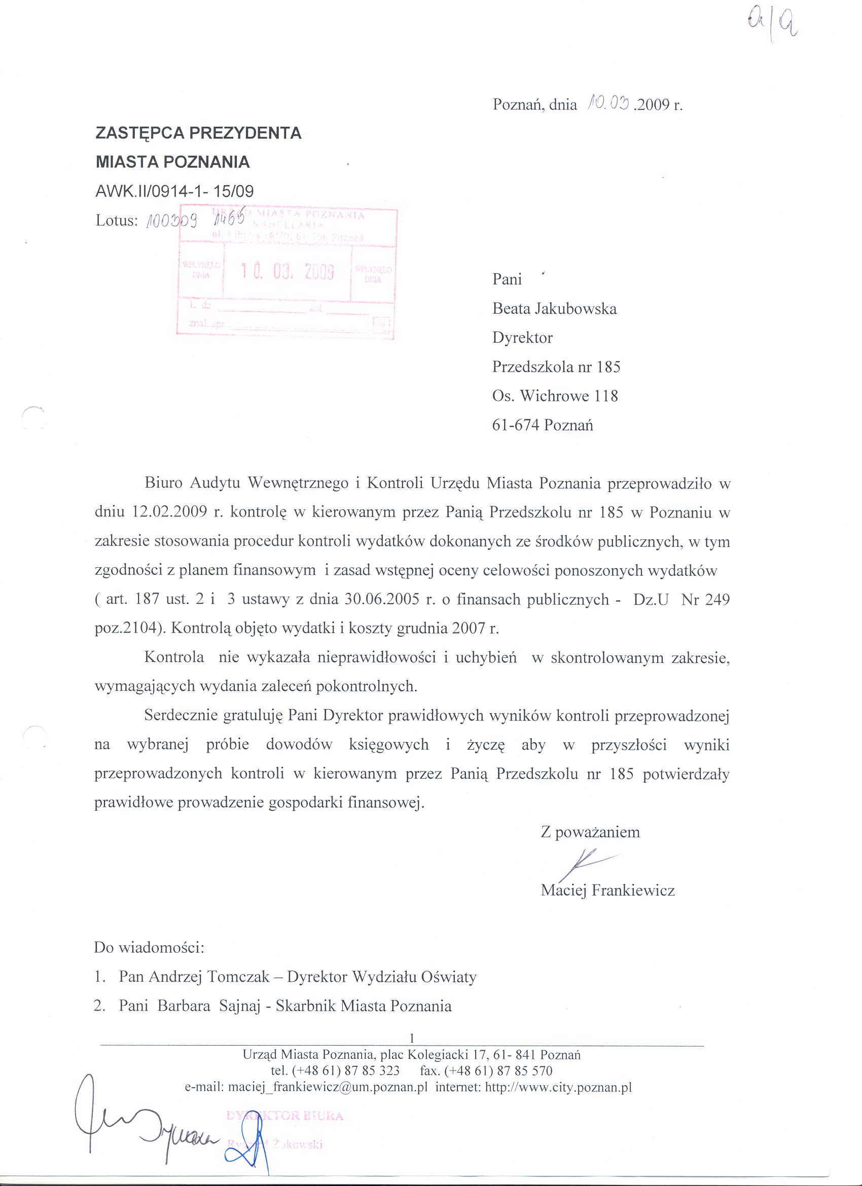 Informacja pobrana do BIP automatycznie z elektronicznego systemu zarządzania dokumentacją Urzędu Miasta Poznania.