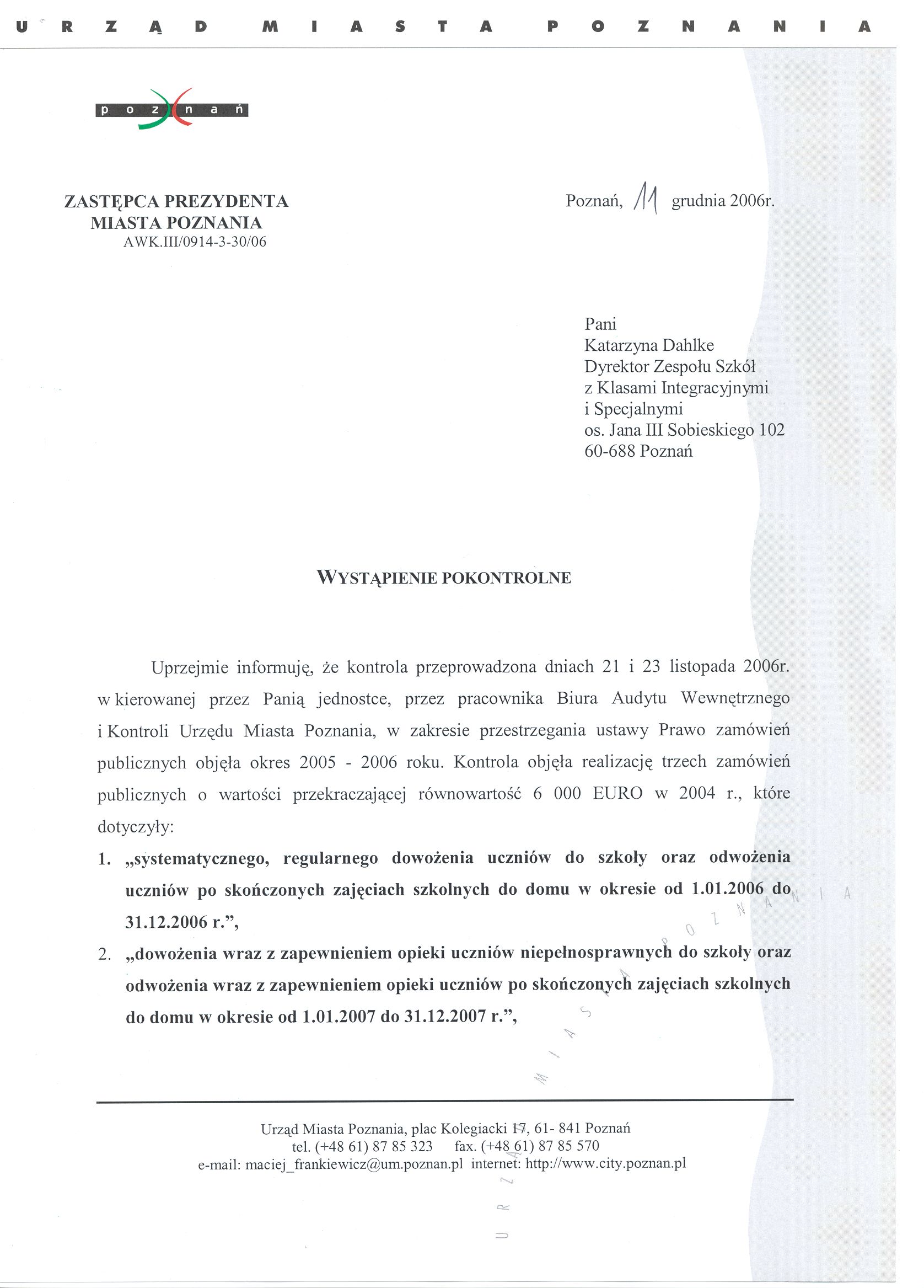 Kontrola: AWK.II/0914-3-30/06