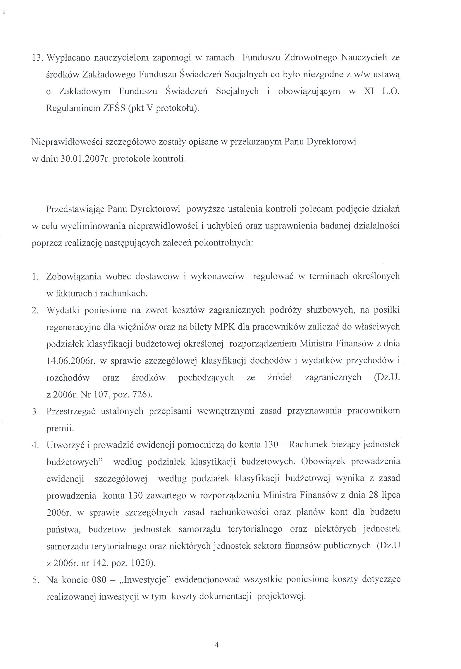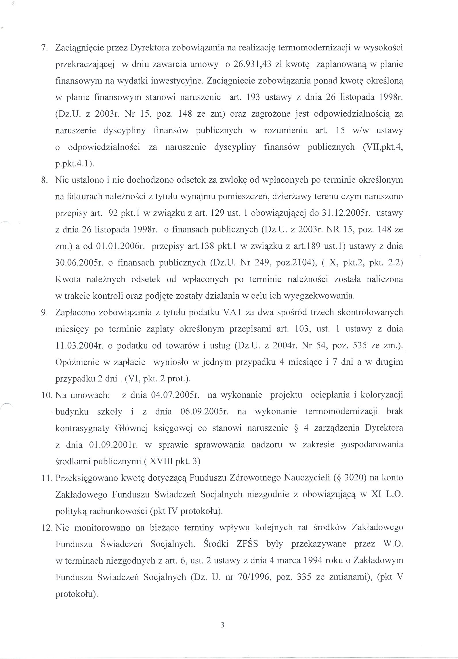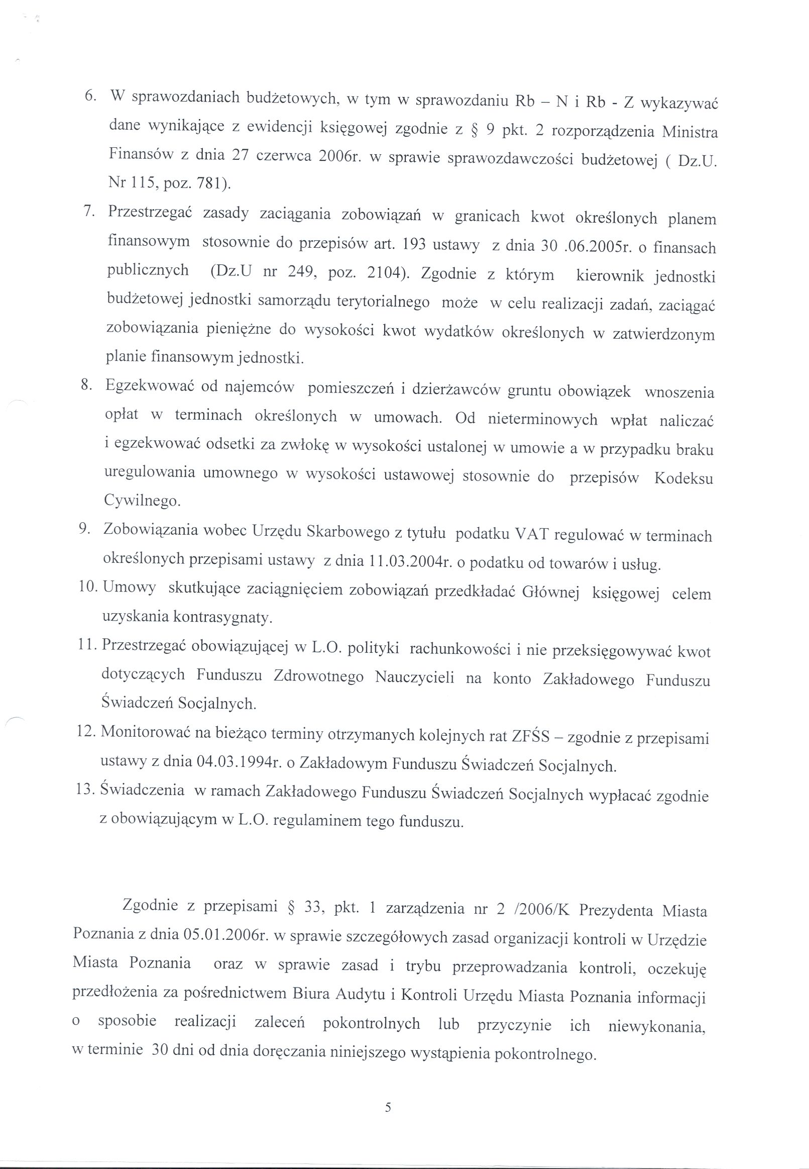Kontrola w zakresie o którym mowa w art. 47 ustawy z dnia 30.06.2005r. o finansach publicznych za 2005r. oraz kontrola wydatków przeznaczonych na wynagrodzenia