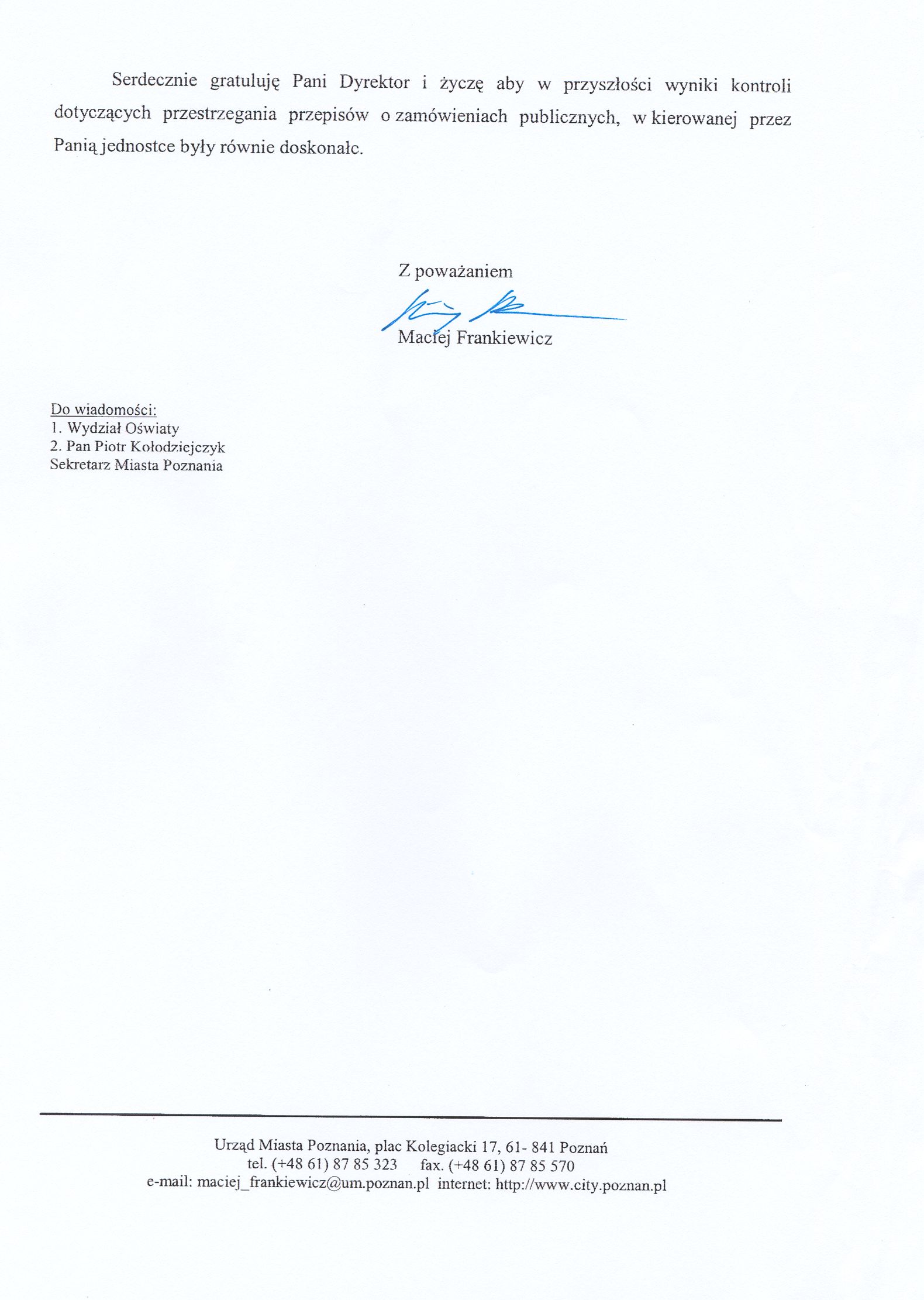 Informacja pobrana do BIP automatycznie z elektronicznego systemu zarządzania dokumentacją Urzędu Miasta Poznania.