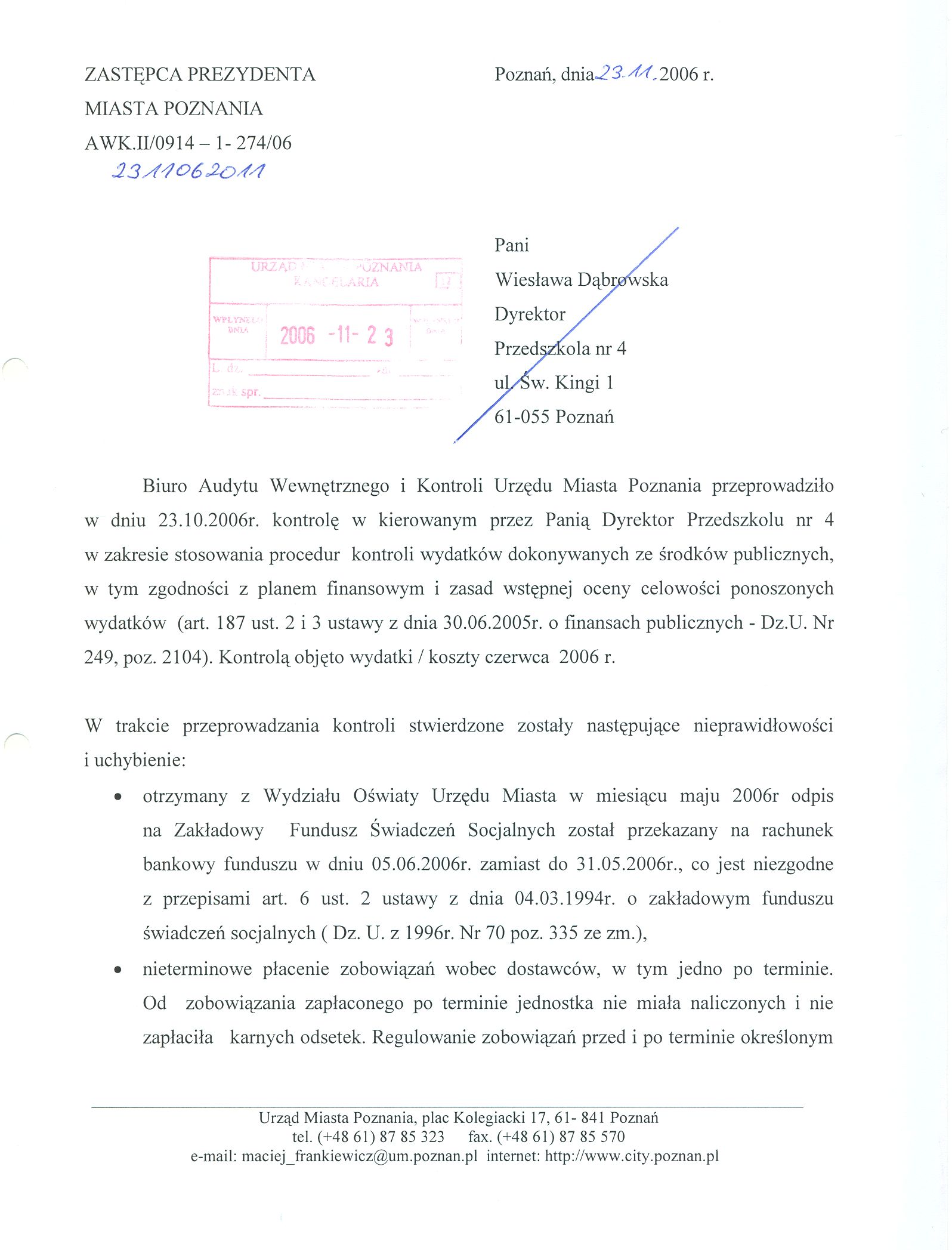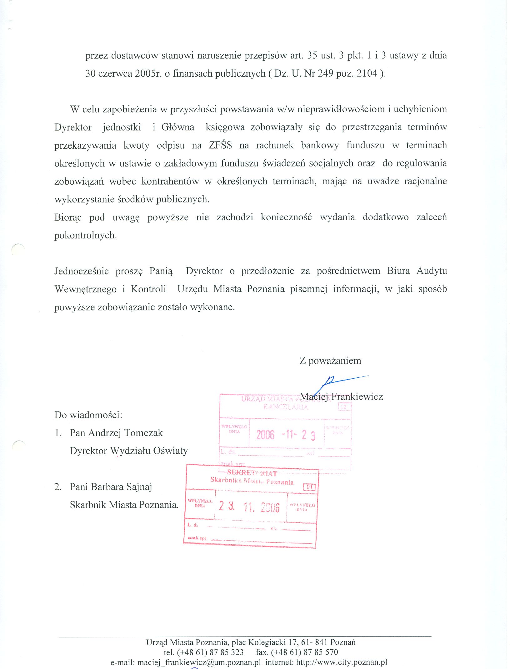 Informacja pobrana do BIP automatycznie z elektronicznego systemu zarządzania dokumentacją Urzędu Miasta Poznania.