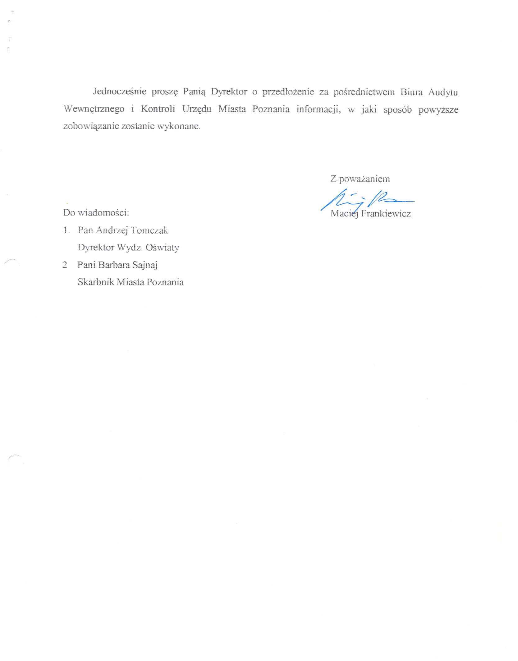 Informacja pobrana do BIP automatycznie z elektronicznego systemu zarządzania dokumentacją Urzędu Miasta Poznania.