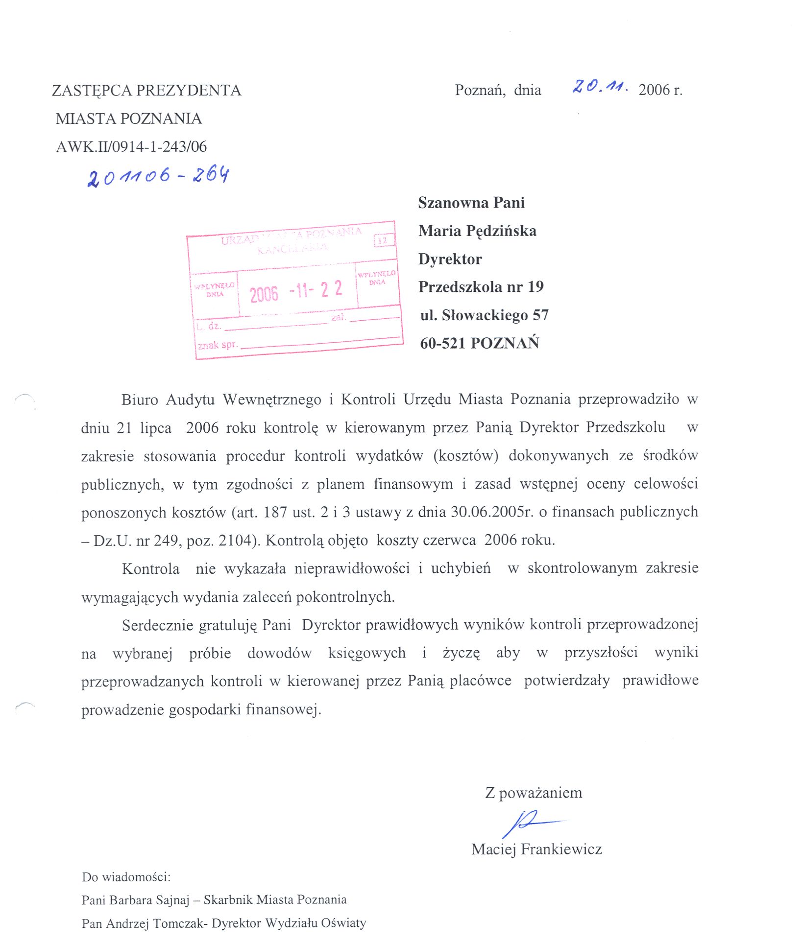 Informacja pobrana do BIP automatycznie z elektronicznego systemu zarządzania dokumentacją Urzędu Miasta Poznania.