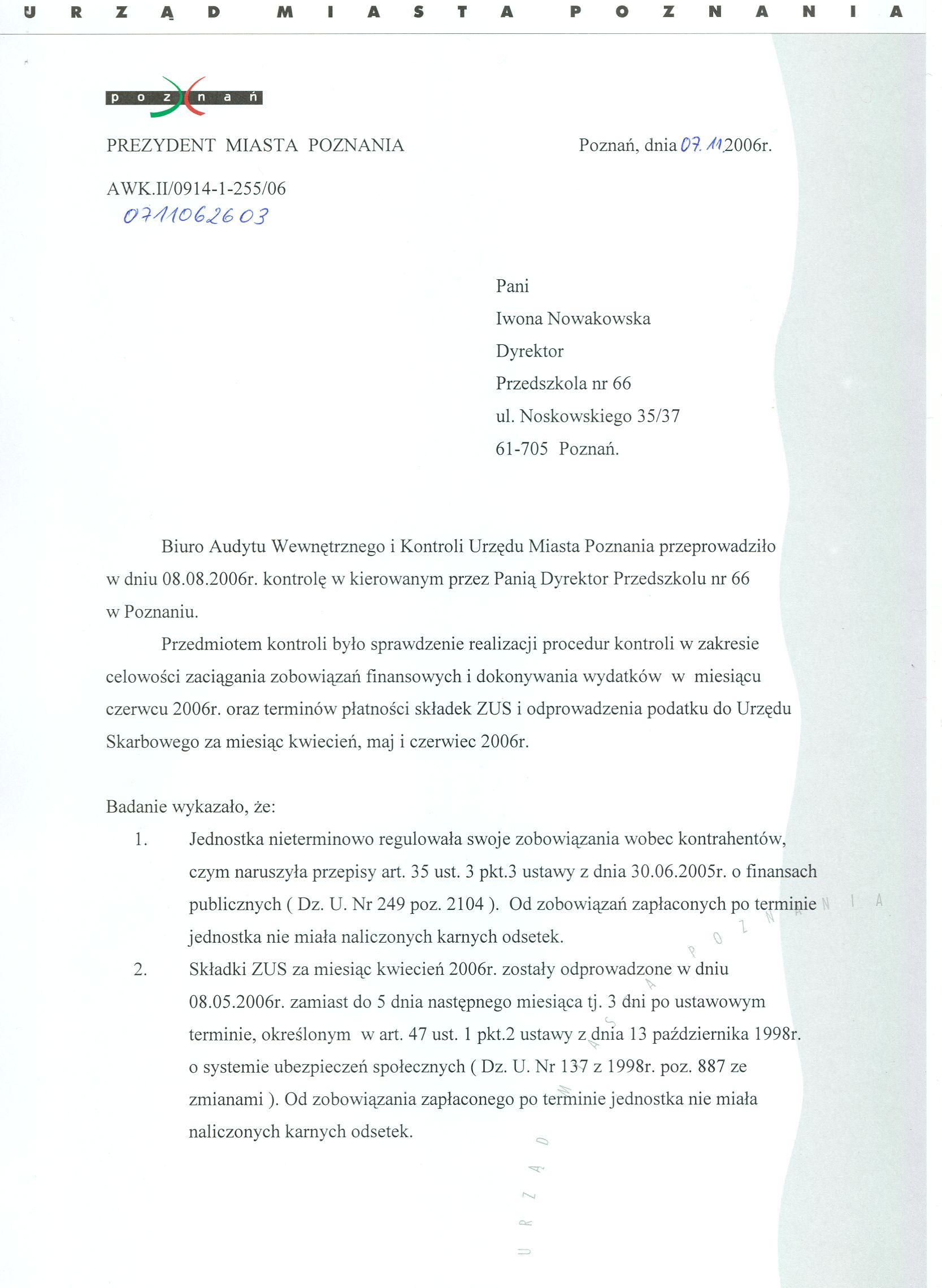 Informacja pobrana do BIP automatycznie z elektronicznego systemu zarządzania dokumentacją Urzędu Miasta Poznania.