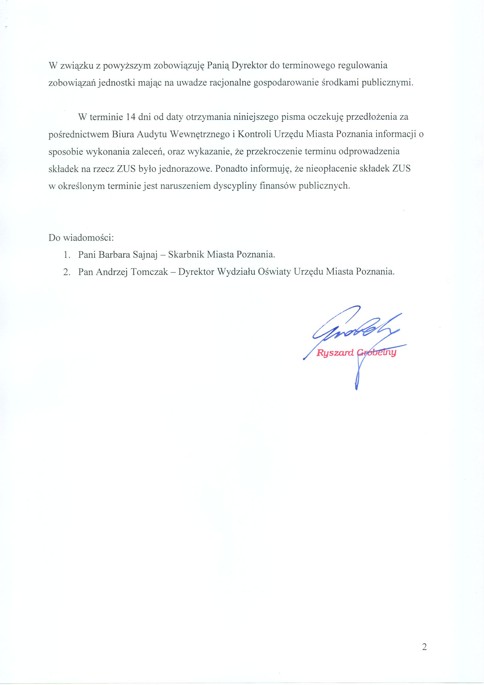 - Zobowiązuję Panią Dyrektor do terminowego regulowania zobowiązań jednostki mając na uwadze racjonalne gospodarowanie środkami publicznymi.