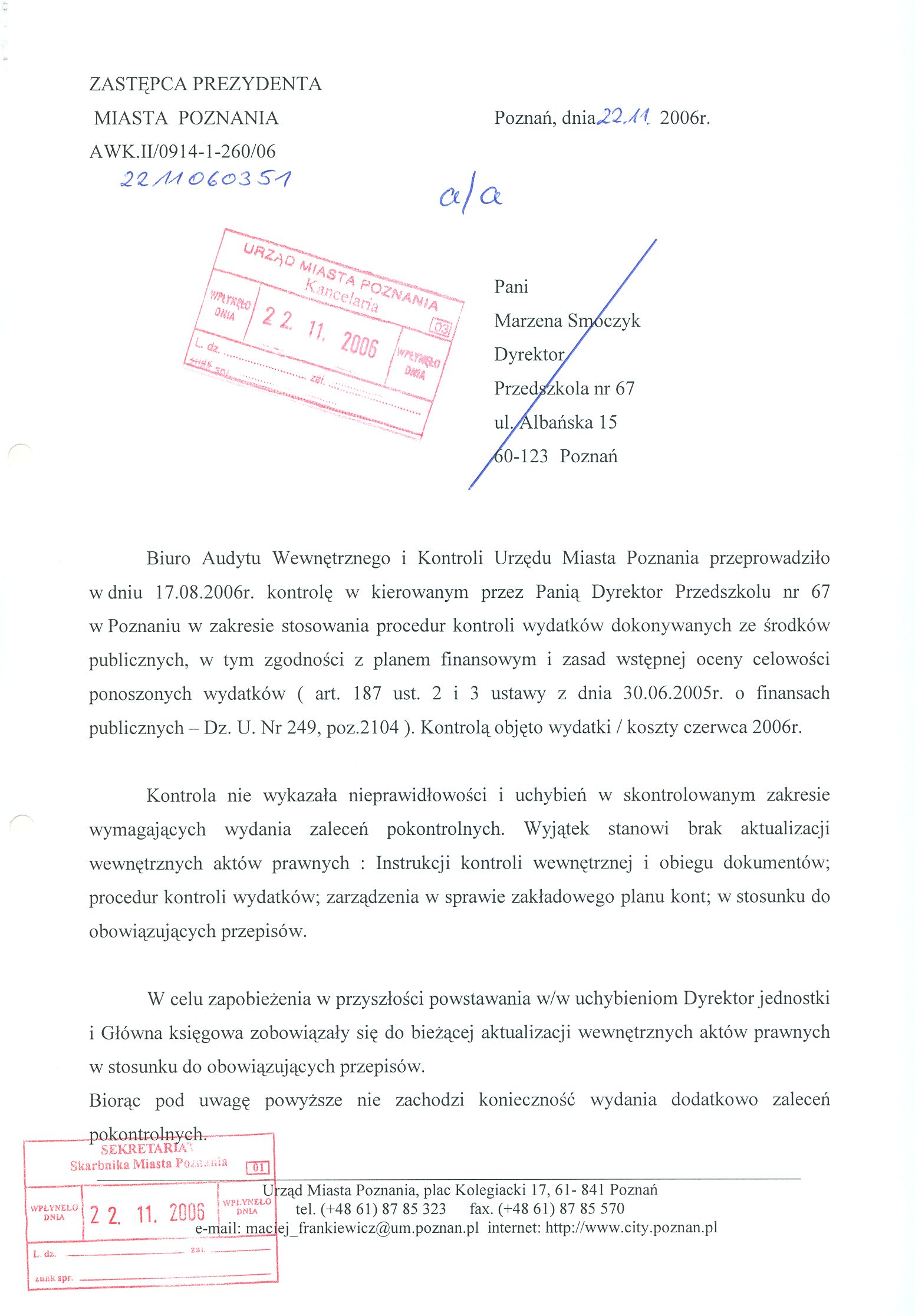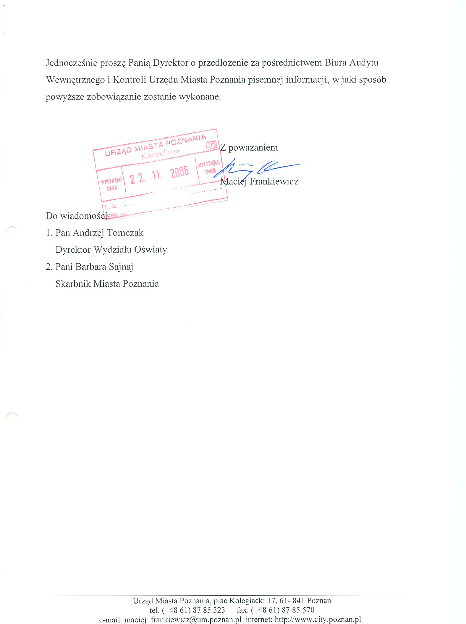 Informacja pobrana do BIP automatycznie z elektronicznego systemu zarządzania dokumentacją Urzędu Miasta Poznania.