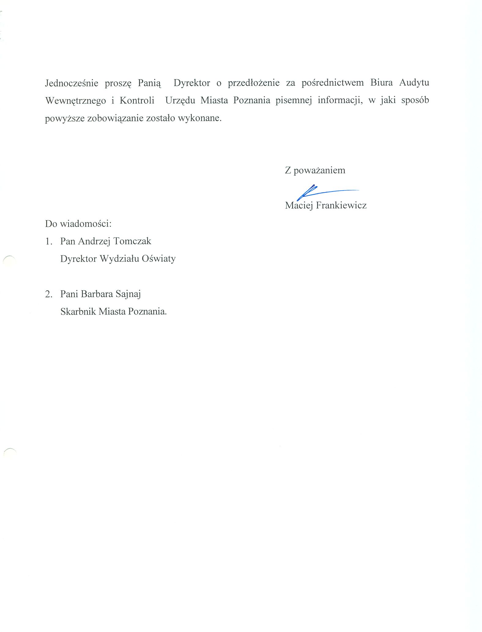 Informacja pobrana do BIP automatycznie z elektronicznego systemu zarządzania dokumentacją Urzędu Miasta Poznania.