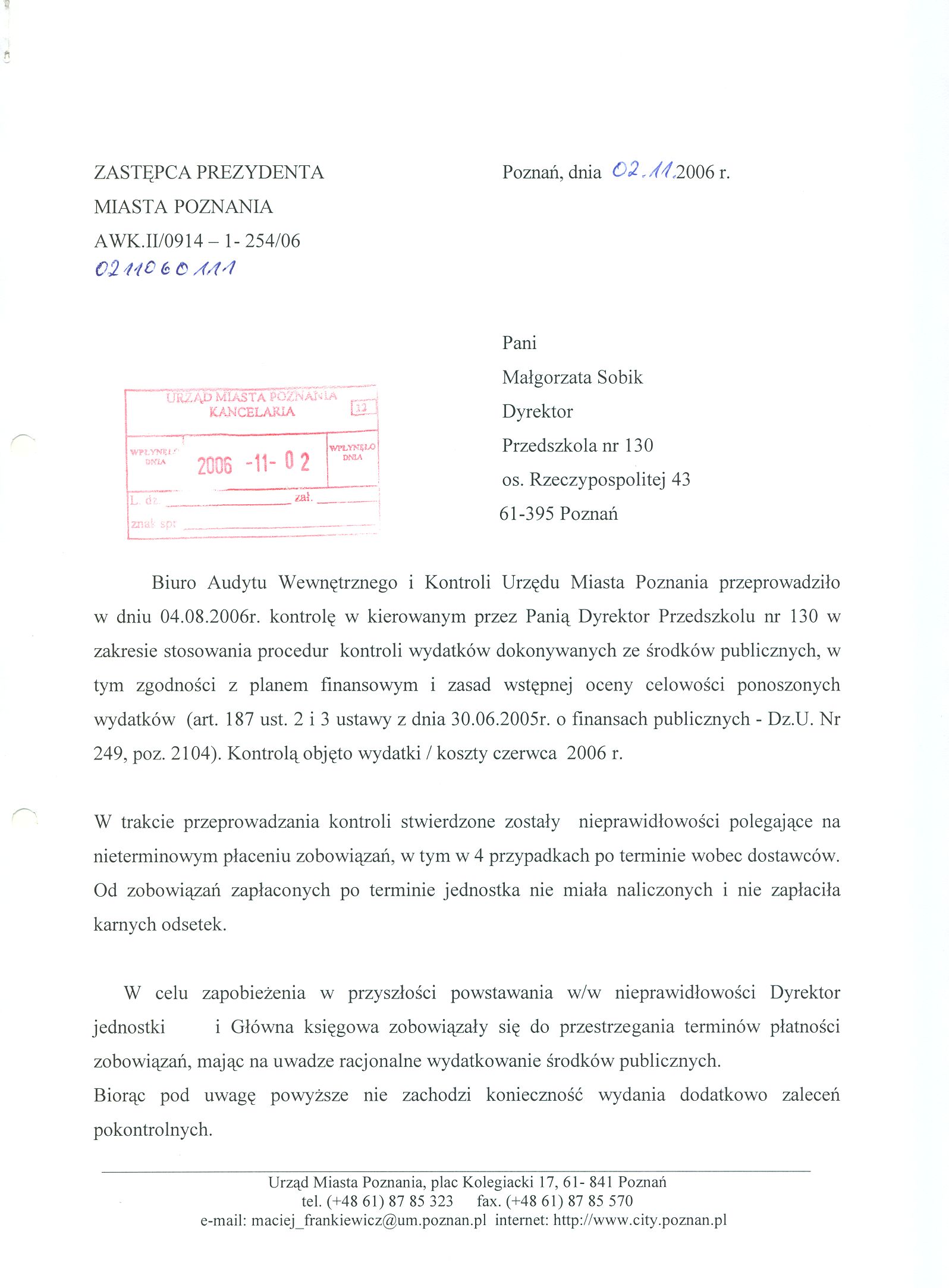 Kontrola: AWK.II/0914-1-254/06
