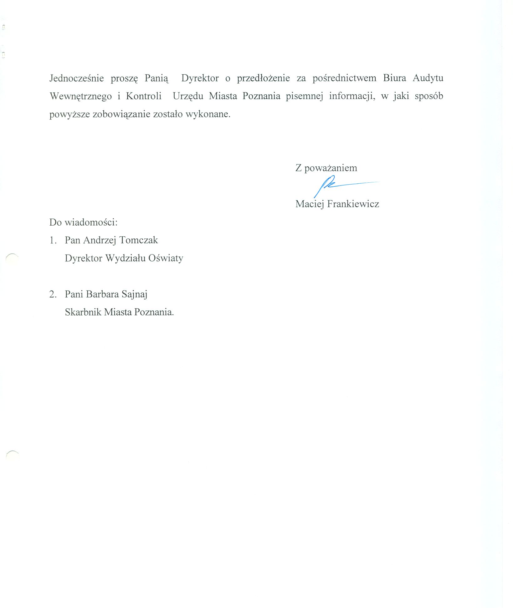 Informacja pobrana do BIP automatycznie z elektronicznego systemu zarządzania dokumentacją Urzędu Miasta Poznania.