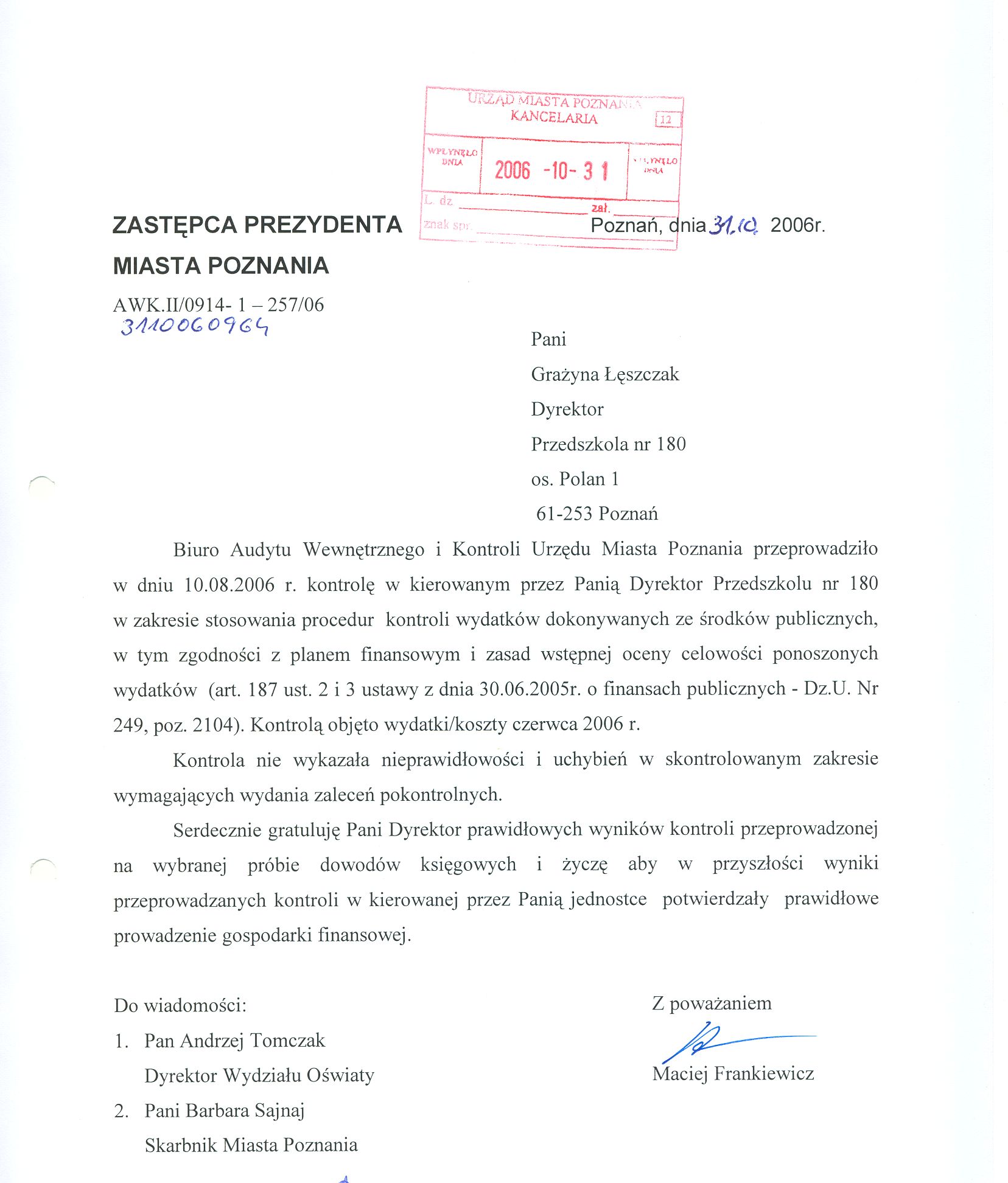 Informacja pobrana do BIP automatycznie z elektronicznego systemu zarządzania dokumentacją Urzędu Miasta Poznania.