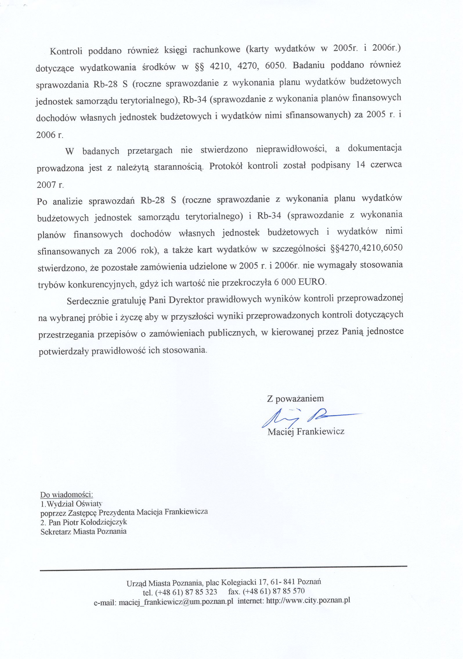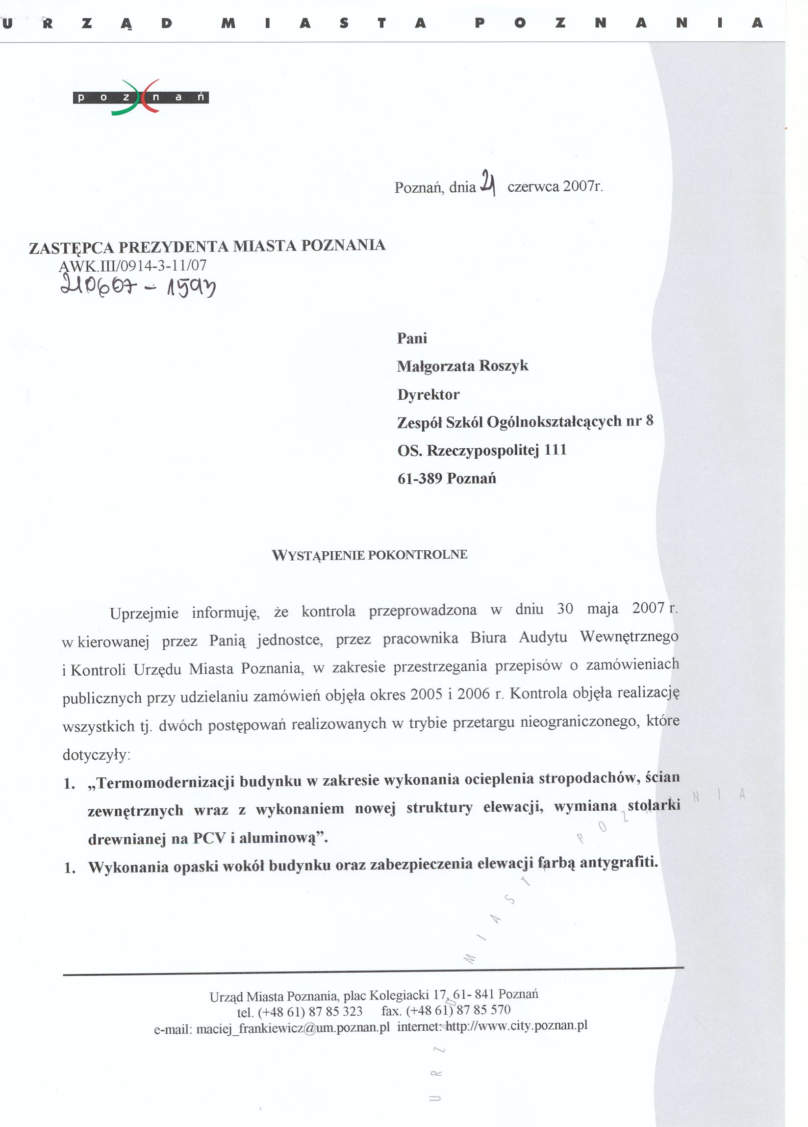 Informacja pobrana do BIP automatycznie z elektronicznego systemu zarządzania dokumentacją Urzędu Miasta Poznania.