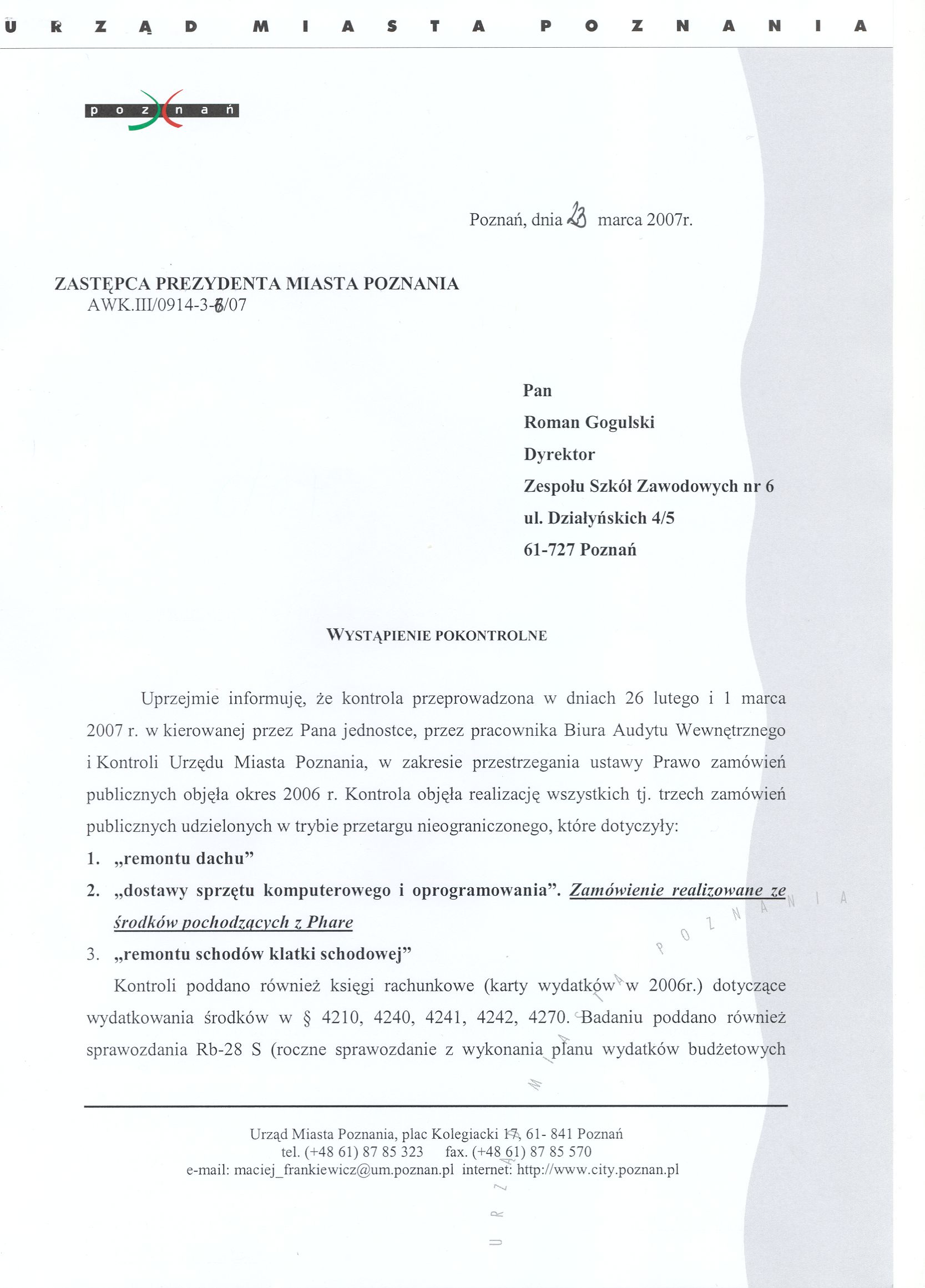 Kontrola: AWK.III/0914-3-6/07