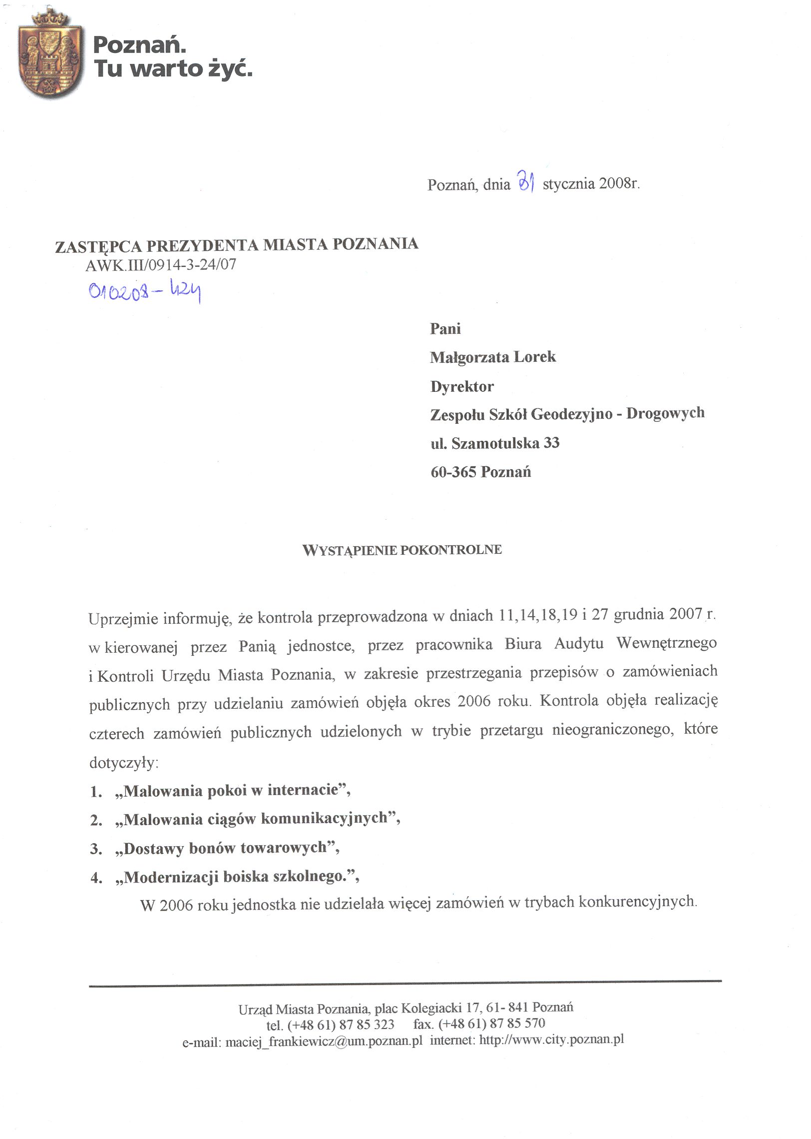 Informacja pobrana do BIP automatycznie z elektronicznego systemu zarządzania dokumentacją Urzędu Miasta Poznania.