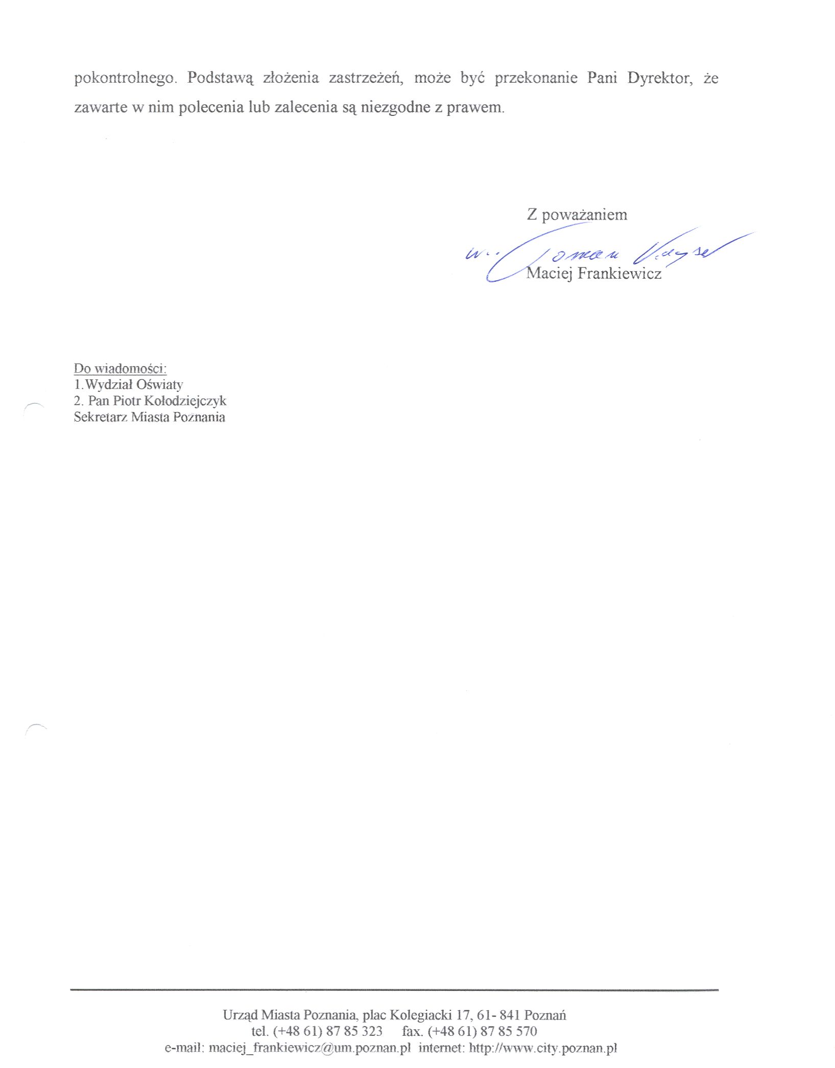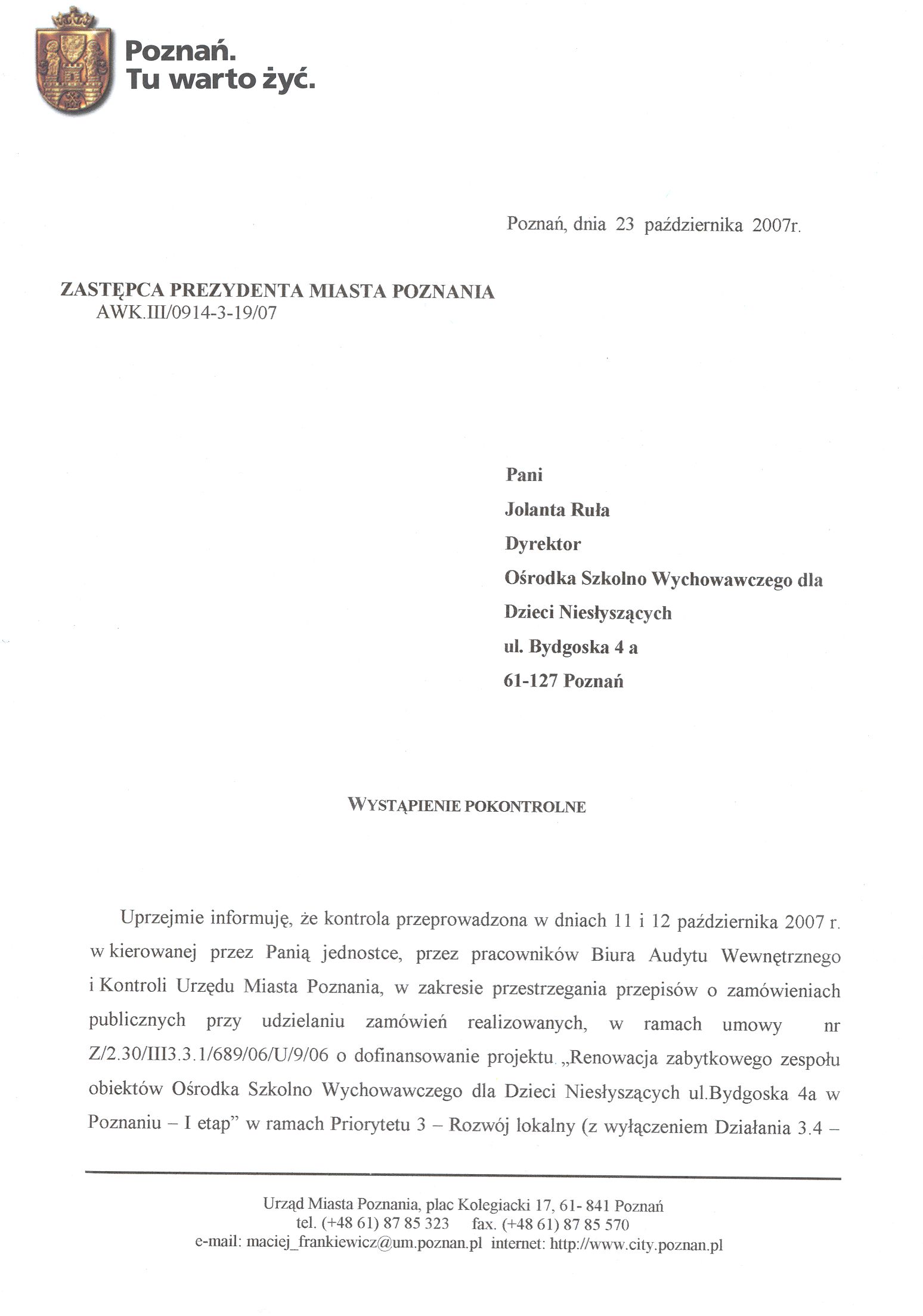 Informacja pobrana do BIP automatycznie z elektronicznego systemu zarządzania dokumentacją Urzędu Miasta Poznania.