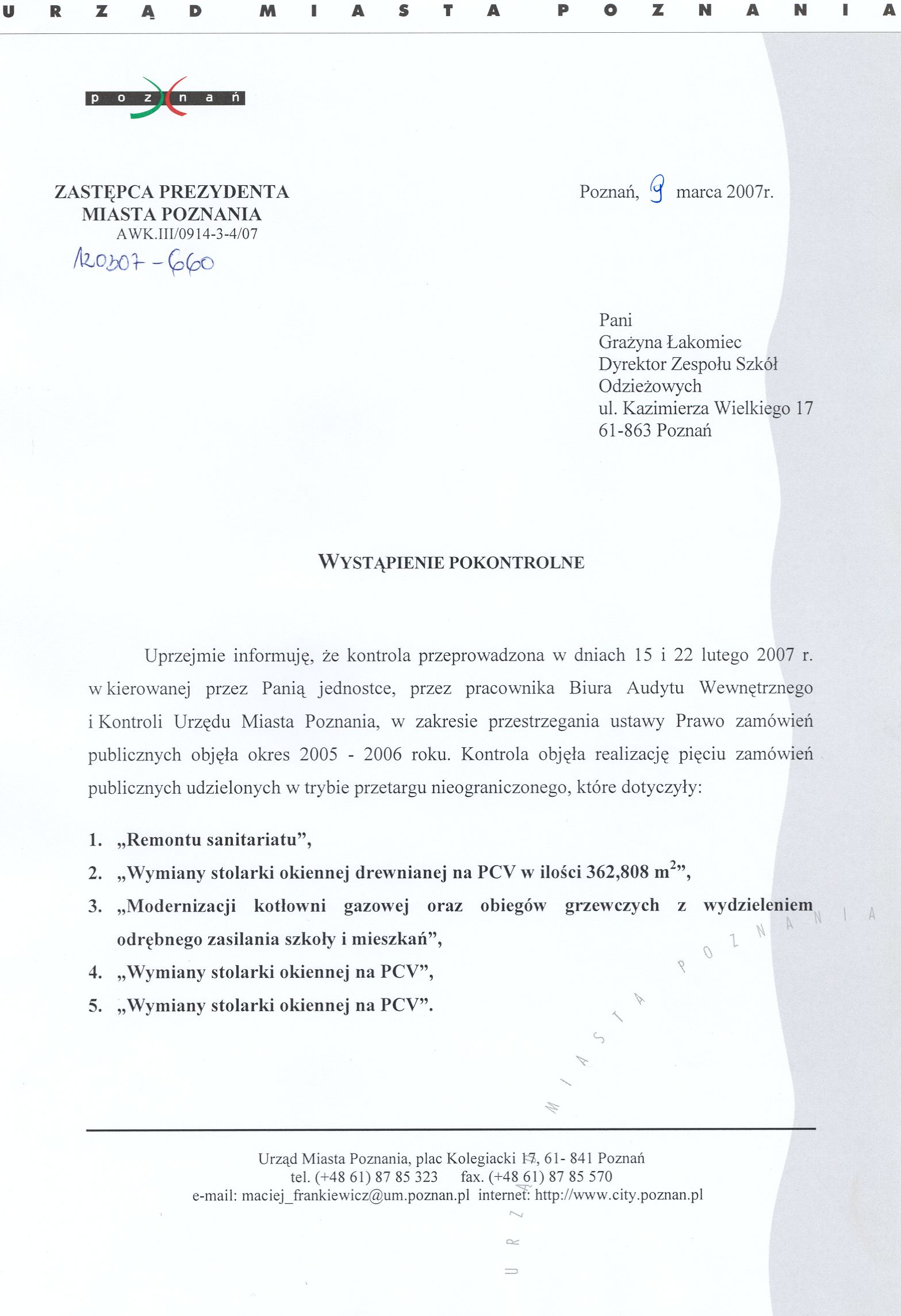 Kontrola: AWK.II/0914-3-4/07