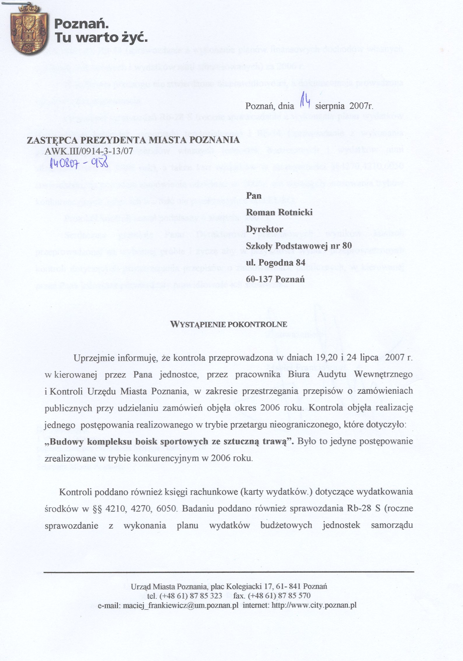 Informacja pobrana do BIP automatycznie z elektronicznego systemu zarządzania dokumentacją Urzędu Miasta Poznania.