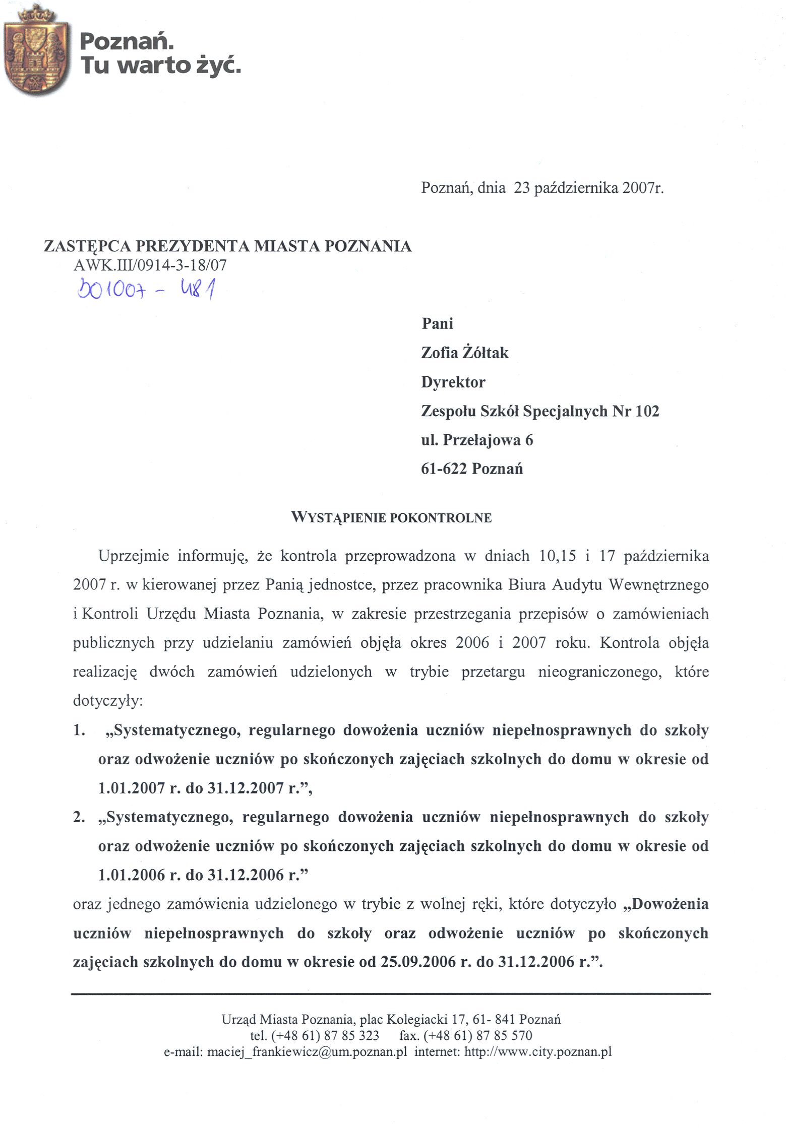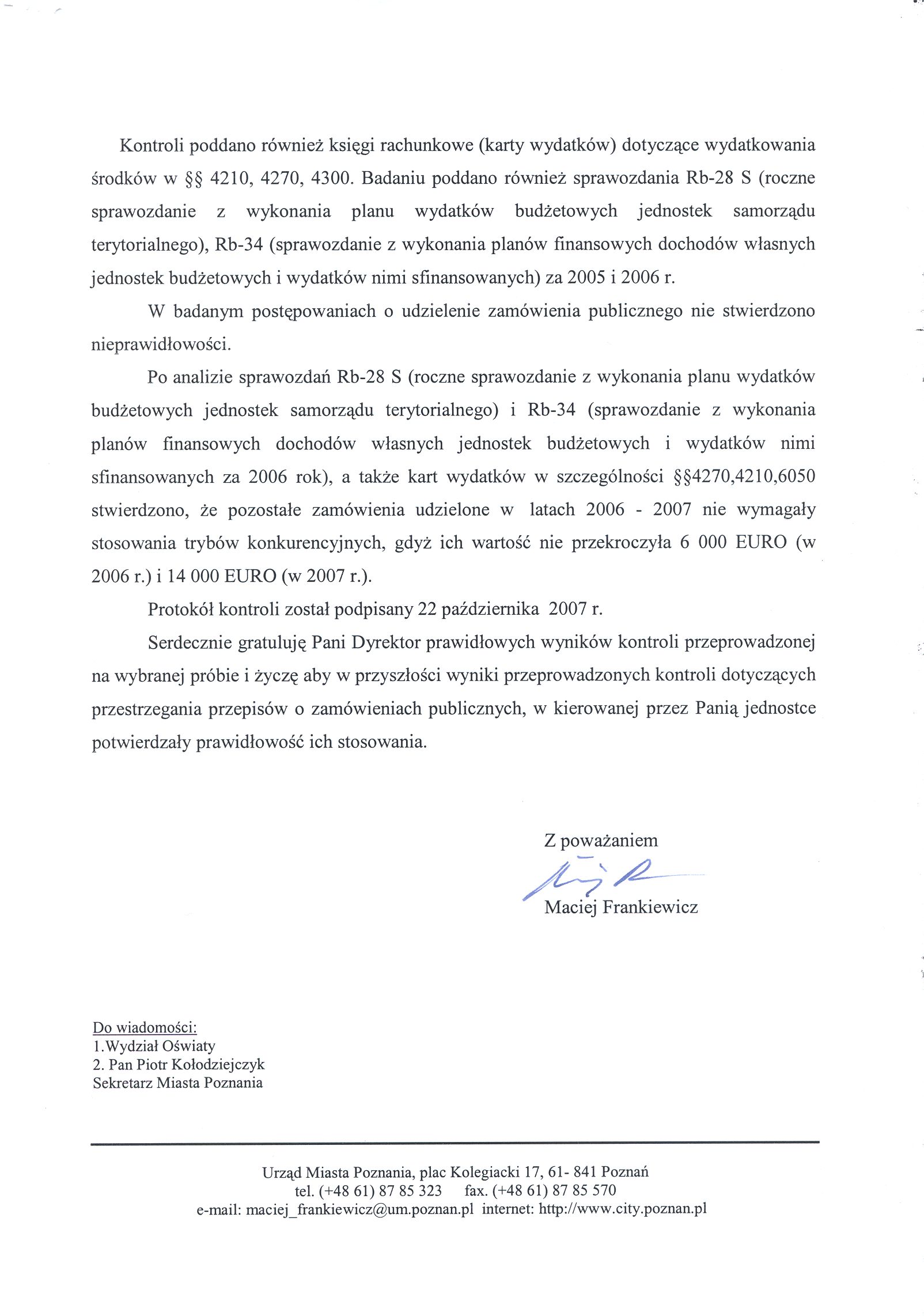 Informacja pobrana do BIP automatycznie z elektronicznego systemu zarządzania dokumentacją Urzędu Miasta Poznania.