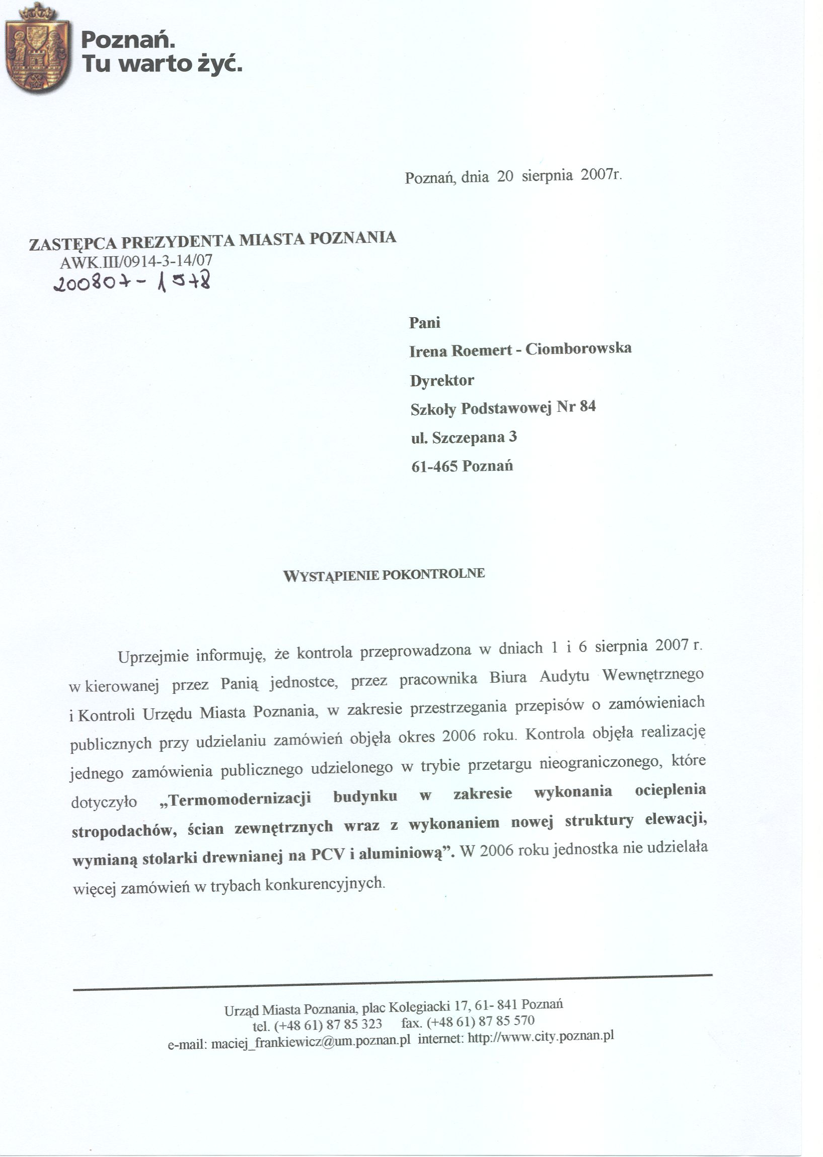 Informacja pobrana do BIP automatycznie z elektronicznego systemu zarządzania dokumentacją Urzędu Miasta Poznania.