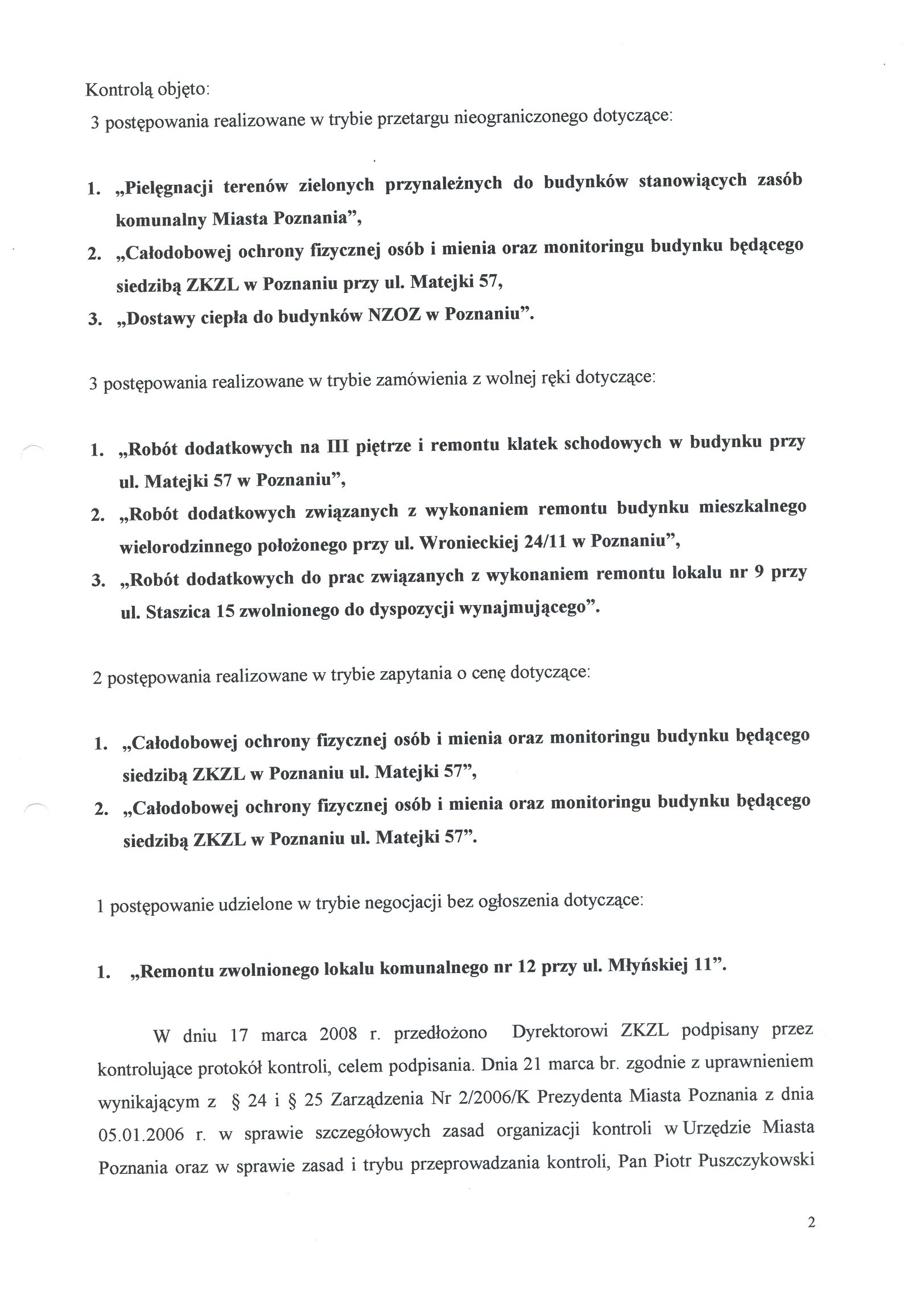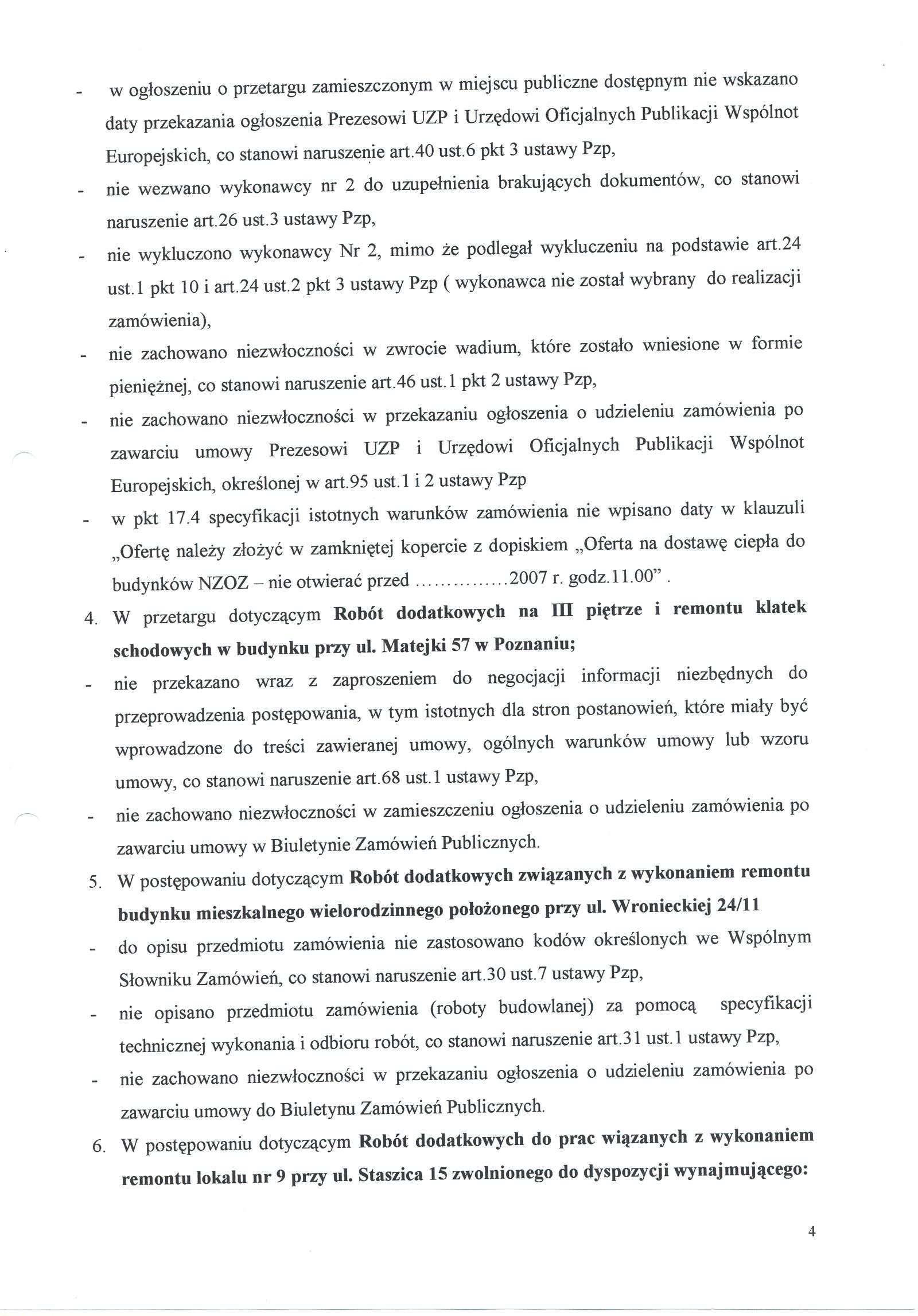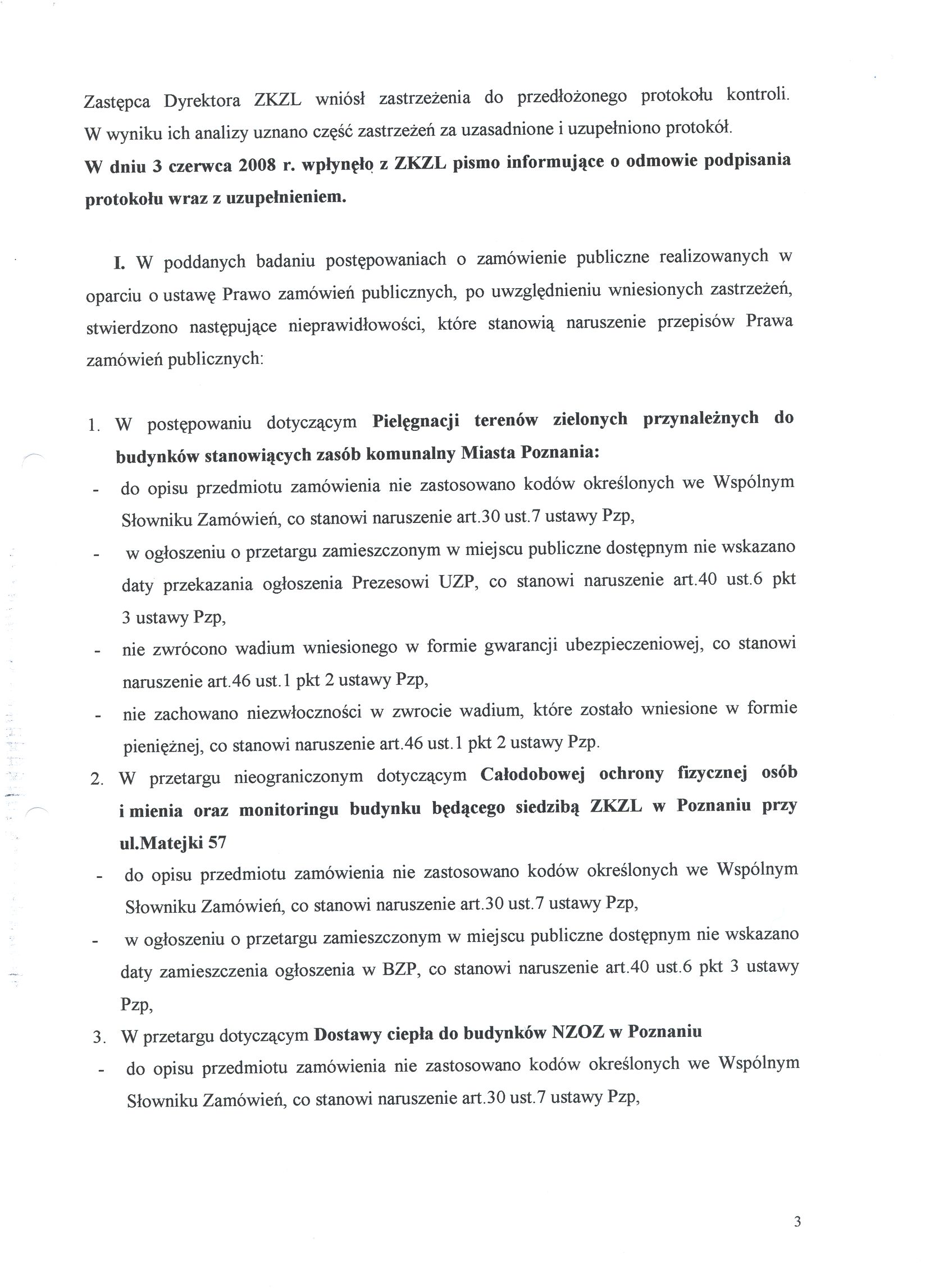 - Zobowiązano Pana p.o. dyrektora ZKZL do1. właściwego stosowania przepisów ustawy z dnia 29 stycznia 2004r. Prawo zamówień publicznych, a w szczególności do: