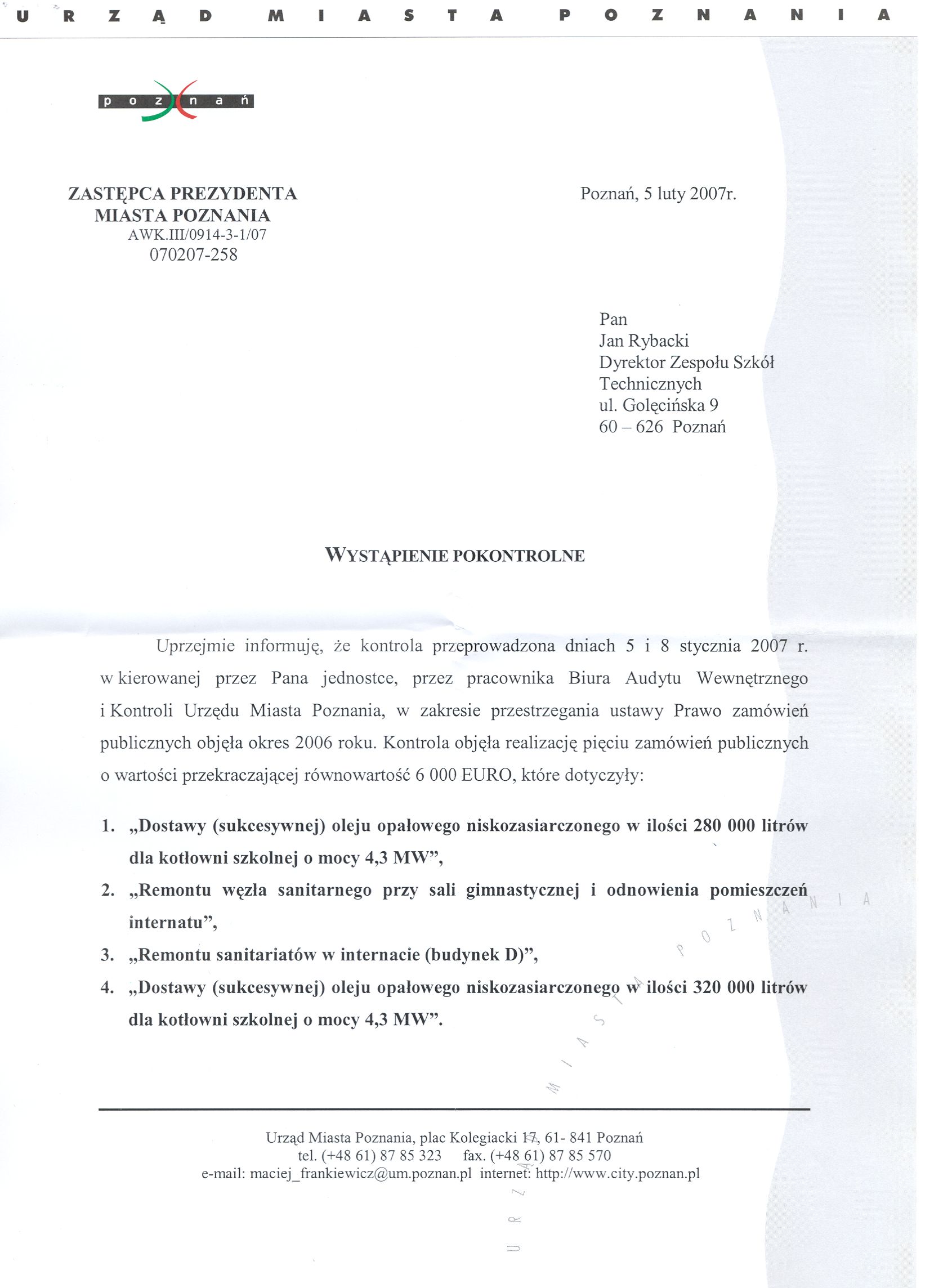 Informacja pobrana do BIP automatycznie z elektronicznego systemu zarządzania dokumentacją Urzędu Miasta Poznania.