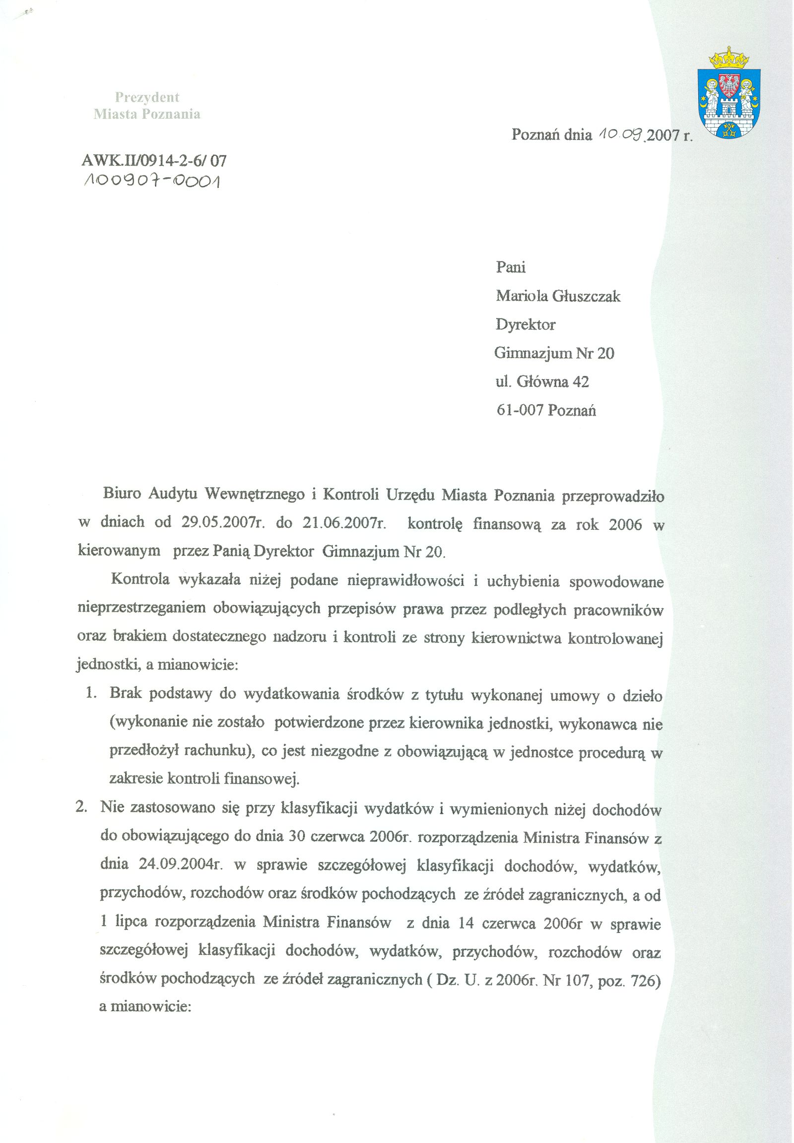 Kontrola: AWK.II/0914-2-6/07
